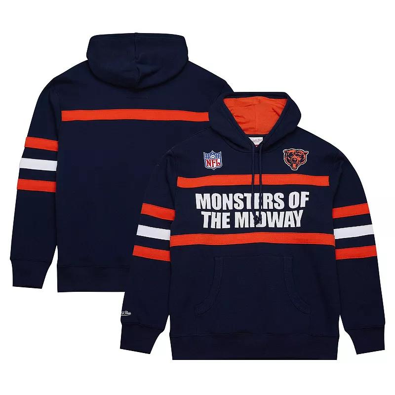Embrace classic Chicago Bears style and comfort with this Vintage Logo Head Coach Fleece Pullover Hoodie. This hoodie boasts a vintage Chicago Bears logo thats sure to spark conversations and envious looks from fellow fans. Plus, with a luxuriously soft fleece lining, youll stay comfortably warm whether youre cheering from the stands on game day or showing off your fandom around town.Embrace classic Chicago Bears style and comfort with this Vintage Logo Head Coach Fleece Pullover Hoodie. This hoodie boasts a vintage Chicago Bears logo thats sure to spark conversations and envious looks from fellow fans. Plus, with a luxuriously soft fleece lining, youll stay comfortably warm whether youre cheering from the stands on game day or showing off your fandom around town.PRODUCT FEATURESFront pouch pocketHoodedOfficially licensedPulloverBrand: Mitchell & NessMachine wash, tumble dry lowFleece liningLong sleeveMaterial: 80% Cotton20% Polyester - Body; 100% Cotton - Lining; 95% Polyester/5% Spandex - RibMidweight hoodie suitable for moderate temperaturesImportedSewn-on stripesEmbroidered team graphics Color: Navy. Gender: male. Age Group: adult.
