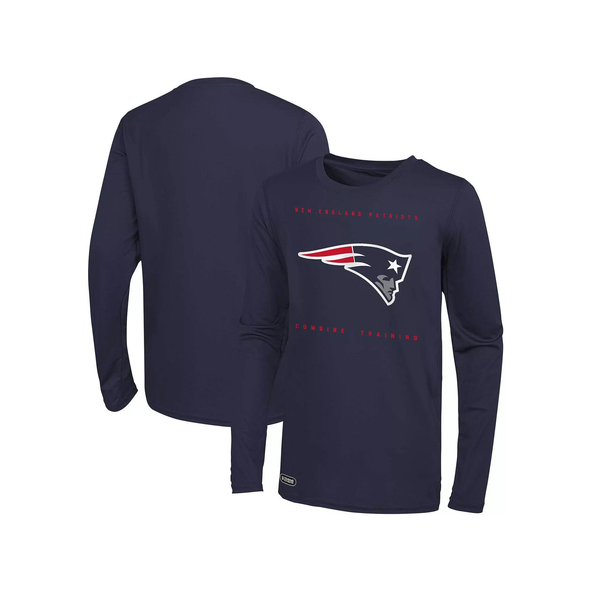 Put eyes on your New England Patriots fandom by grabbing this bonafide Side Drill T-shirt. It features unmistakable New England Patriots graphics that put your fandom front and center and an understated, yet comfortable crew design. Long sleeves make this tee the perfect grab when you want a spirited look that offers a bit of added coverage.Put eyes on your New England Patriots fandom by grabbing this bonafide Side Drill T-shirt. It features unmistakable New England Patriots graphics that put your fandom front and center and an understated, yet comfortable crew design. Long sleeves make this tee the perfect grab when you want a spirited look that offers a bit of added coverage.PRODUCT FEATURESOfficially licensedBrand: OuterstuffMachine wash, tumble dry lowMaterial: 100% PolyesterImportedLong sleeveScreen print graphicsCrew neck Size: 2XL. Color: Navy. Gender: male. Age Group: adult.