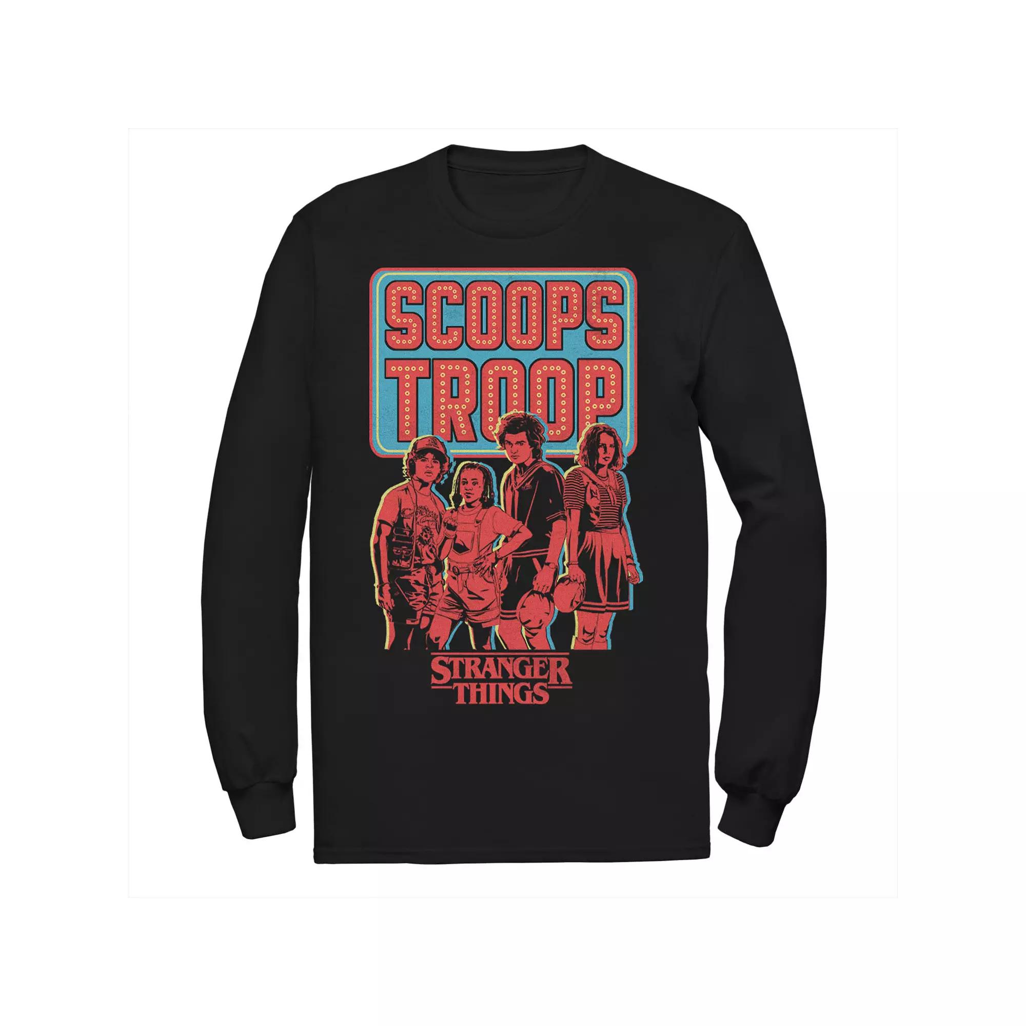 Add a triple scoop of thrilling style to your look with this men's Stranger Things tee. Crewneck Long sleevesFABRIC & CARE Cotton Machine wash Imported Add a triple scoop of thrilling style to your look with this men's Stranger Things tee. Licensed Character Add a triple scoop of thrilling style to your look with this men's Stranger Things tee. Color: Black. Gender: male. Age Group: adult. Pattern: Graphic.