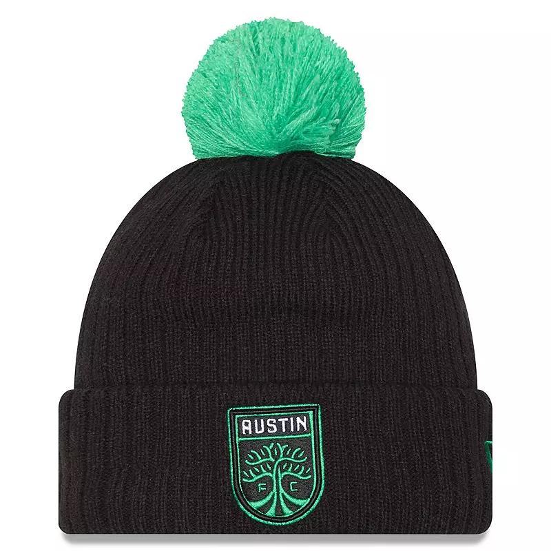 Bundle up and rep the Austin FC with this 2025 Jersey Hook Cuffed Knit Hat with Pom. This New Era knit hat will keep your head and ears nice and warm while you cheer on your favorite MLS team during the winter season. With eye-catching Austin FC graphics, this cozy hat is the perfect accessory for chilly game days.Bundle up and rep the Austin FC with this 2025 Jersey Hook Cuffed Knit Hat with Pom. This New Era knit hat will keep your head and ears nice and warm while you cheer on your favorite MLS team during the winter season. With eye-catching Austin FC graphics, this cozy hat is the perfect accessory for chilly game days.PRODUCT FEATURESEmbroidered graphics with raised detailsImportedCuffed knit hatPom on topMachine wash, tumble dry lowOfficially licensedMaterial: 100% AcrylicBrand: New EraOne size fits most Size: One Size. Color: Afc Black. Gender: male. Age Group: adult.