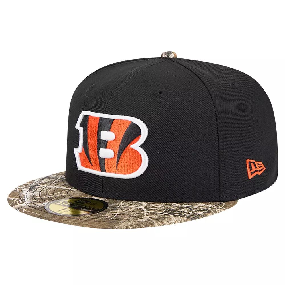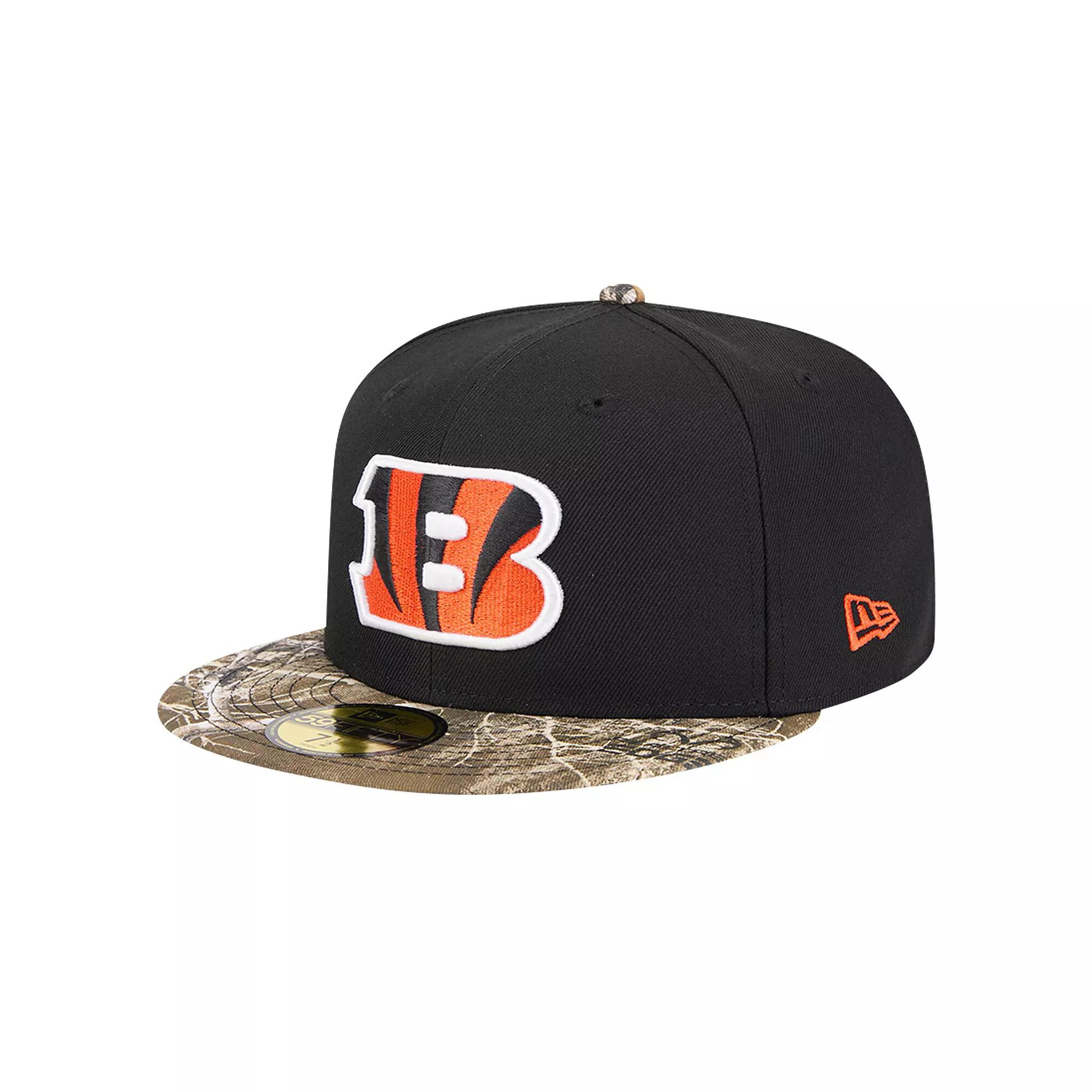 Rep your Cincinnati Bengals with this Active Two-Tone Camo 59FIFTY Fitted Hat from New Era. This hat features an embroidered Cincinnati Bengals logo applique on the front and an embroidered NFL shield logo on the back, making it clear which team you support. The iconic 59FIFTY design features a high crown and structured fit for a timeless look, while the Realtree camo visor adds a rugged and stylish touch.Rep your Cincinnati Bengals with this Active Two-Tone Camo 59FIFTY Fitted Hat from New Era. This hat features an embroidered Cincinnati Bengals logo applique on the front and an embroidered NFL shield logo on the back, making it clear which team you support. The iconic 59FIFTY design features a high crown and structured fit for a timeless look, while the Realtree camo visor adds a rugged and stylish touch.PRODUCT FEATURESHigh CrownStructured fitVisor with Realtree camo designMaterial: 100% PolyesterOfficially licensedFittedFlat billGray undervisorImportedEmbroidered NFL shield logo applique on backBrand: New EraEmbroidered team logo applique on frontWipe clean with a damp clothSix panels with eyeletsThe 59FIFTY is the originator of the true fitted cap and the brands flagship style Size: 7 1/8. Color: Black. Gender: male. Age Group: adult. Material: Cotton.