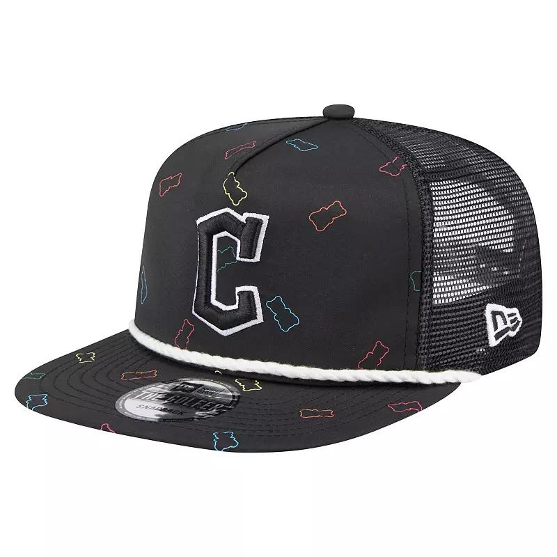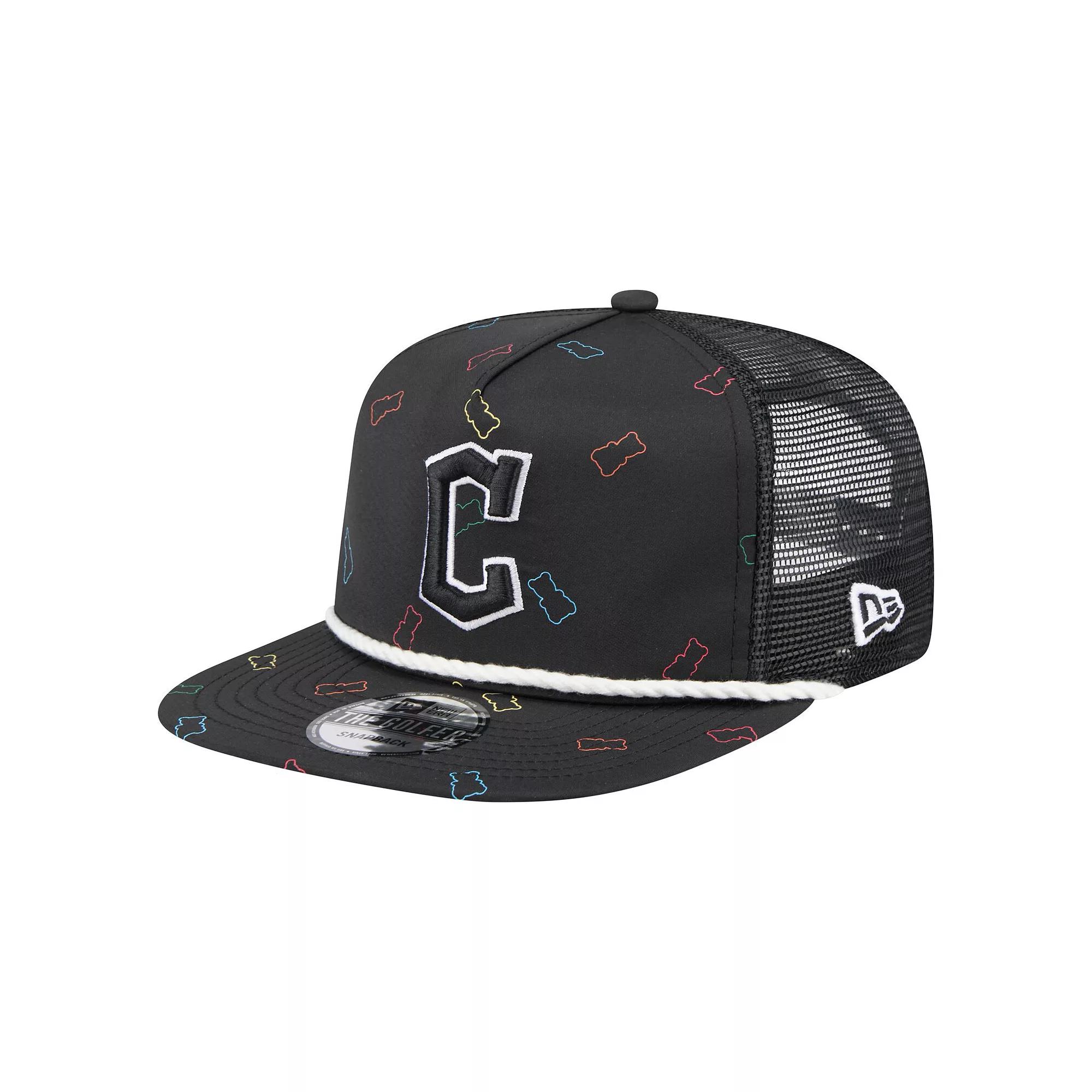 Add a delicious finish to any fan look with this Cleveland Guardians Gummy Golfer Trucker Adjustable Hat. This New Era-crafted hat features a team logo embroidered over a sweet pattern of gummy bears. The mesh panels and rope visor add classic details to this fun Cleveland Guardians hat.Add a delicious finish to any fan look with this Cleveland Guardians Gummy Golfer Trucker Adjustable Hat. This New Era-crafted hat features a team logo embroidered over a sweet pattern of gummy bears. The mesh panels and rope visor add classic details to this fun Cleveland Guardians hat.PRODUCT FEATURESRope detail across visorUnstructured relaxed fitSolid front panelWipe clean with a damp clothOne size fits mostMaterial: 100% PolyesterImportedScreen print gummy bear outline patternSnapbackOfficially licensedEmbroidered graphics with raised detailsMesh mid and rear panelsBrand: New EraMid CrownFlat bill Size: One Size. Color: Grd Black. Gender: male. Age Group: adult. Material: COTTON.
