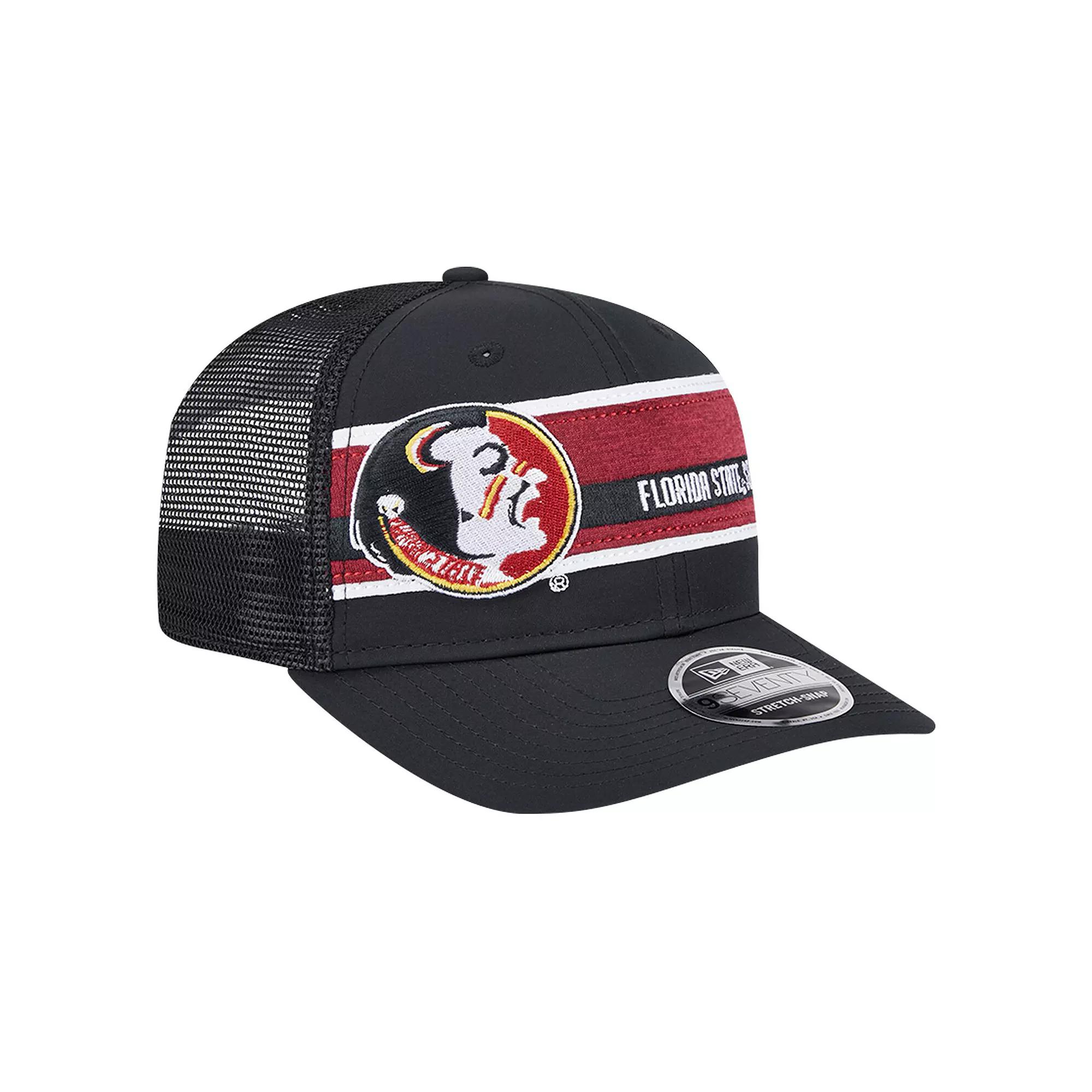 Add some Florida State Seminoles flair to your wardrobe with this New Era Striped 9SEVENTY Trucker Adjustable Hat. This Florida State Seminoles hat features a structured crown, semi-curved visor and performance stretch sweatband to provide a modern and adjustable fit youll love. The solid front panels display a sewn-on fabric applique with embroidered team details, while the mesh mid and rear panels enhance breathability.Add some Florida State Seminoles flair to your wardrobe with this New Era Striped 9SEVENTY Trucker Adjustable Hat. This Florida State Seminoles hat features a structured crown, semi-curved visor and performance stretch sweatband to provide a modern and adjustable fit youll love. The solid front panels display a sewn-on fabric applique with embroidered team details, while the mesh mid and rear panels enhance breathability.PRODUCT FEATURESOfficially licensedMid CrownMICROERA technology acts as an anti-microbial to reduce odorStructured fitCurved billCOOLERA technology wicks away sweatWipe clean with a damp clothImportedGray undervisorOne size fits mostMesh mid and rear panelsStretch-SnapSolid front panels with eyeletsSewn-on fabric applique with embroidered team detailsThe 9SEVENTY provides a modern adjustable fit and versatile style with its structured crown, semi-curved visor and performance stretch sweatbandBrand: New Era Size: One Size. Color: Black. Gender: male. Age Group: adult. Material: Cotton.