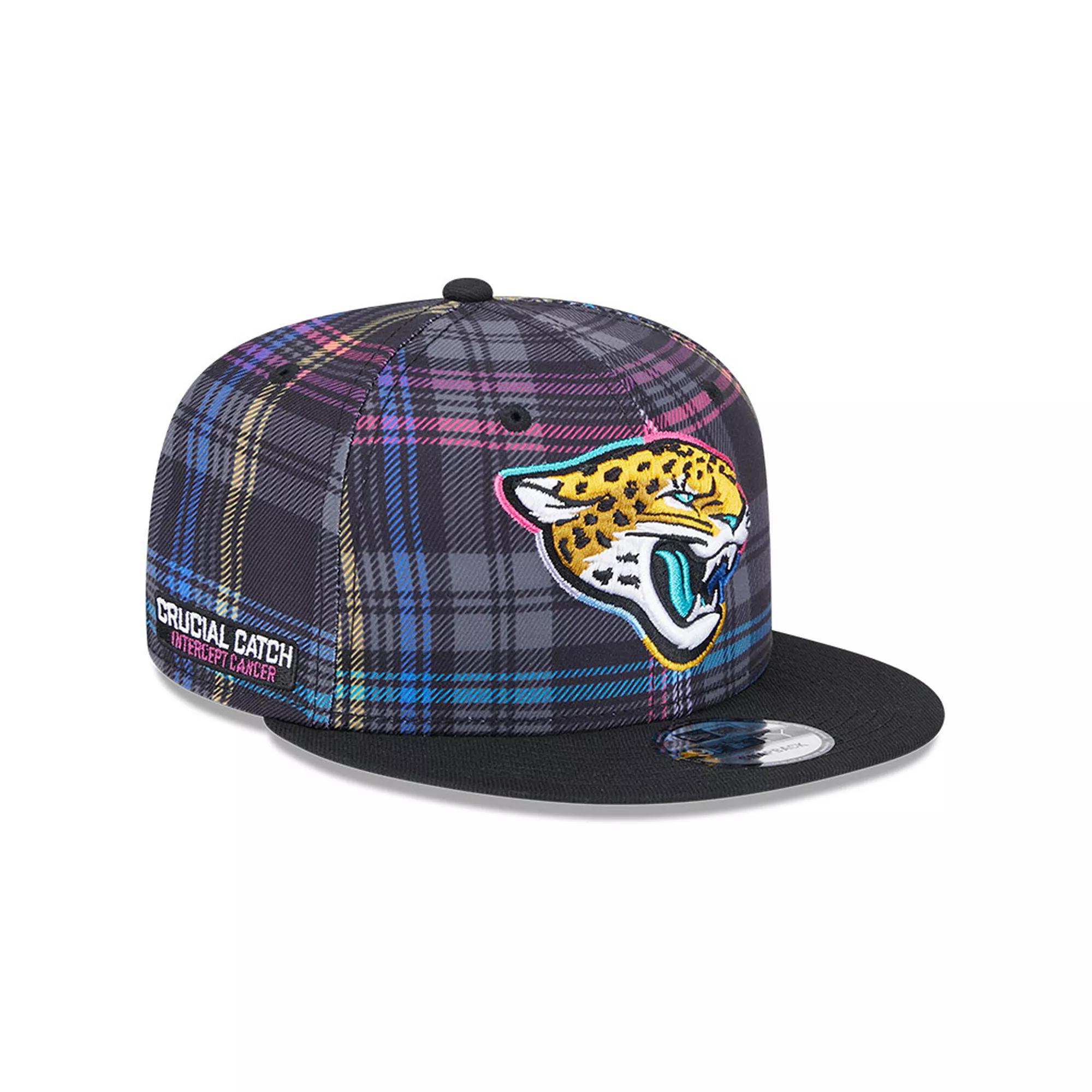 Help intercept cancer with the 2024 NFL Crucial Catch Collection. Adorned in the colors of various cancer ribbon colors, this New Era Plaid 9FIFTY Snapback Hat features your Jacksonville Jaguars logo, making it perfect for spreading awareness year-round. Join the Jacksonville Jaguars players as they wear this gear on the sideline during the month of October and beyond! The NFL does not profit from the sale of Crucial Catch products. Charitable contributions are awarded by the NFL Foundation to the American Cancer Society. For more information, please visithttp://www.NFL.com/CrucialCatchHelp intercept cancer with the 2024 NFL Crucial Catch Collection. Adorned in the colors of various cancer ribbon colors, this New Era Plaid 9FIFTY Snapback Hat features your Jacksonville Jaguars logo, making it perfect for spreading awareness year-round. Join the Jacksonville Jaguars players as they wear this gear on the sideline during the month of October and beyond! The NFL does not profit from the sale of Crucial Catch products. Charitable contributions are awarded by the NFL Foundation to the American Cancer Society. For more information, please visithttp://www.NFL.com/CrucialCatchPRODUCT FEATURESSnapbackEmbroidered Crucial Catch logo on right side panelOfficially licensedEmbroidered NFL shield on rear panelsSix panels with eyeletsImportedSublimated plaid design on all six panelsHigh CrownThe NFL does not profit from the sale of Crucial Catch products. Charitable contributions are awarded by the NFL Foundation to the American Cancer Society. For more information, please visit http://www.NFL.com/CrucialCatchWipe clean with a damp clothBrand: New EraStructured fitFlat billMaterial: 100% PolyesterRaised team embroidery on front panels Size: One Size. Color: Black. Gender: male. Age Group: adult. Material: Cotton.