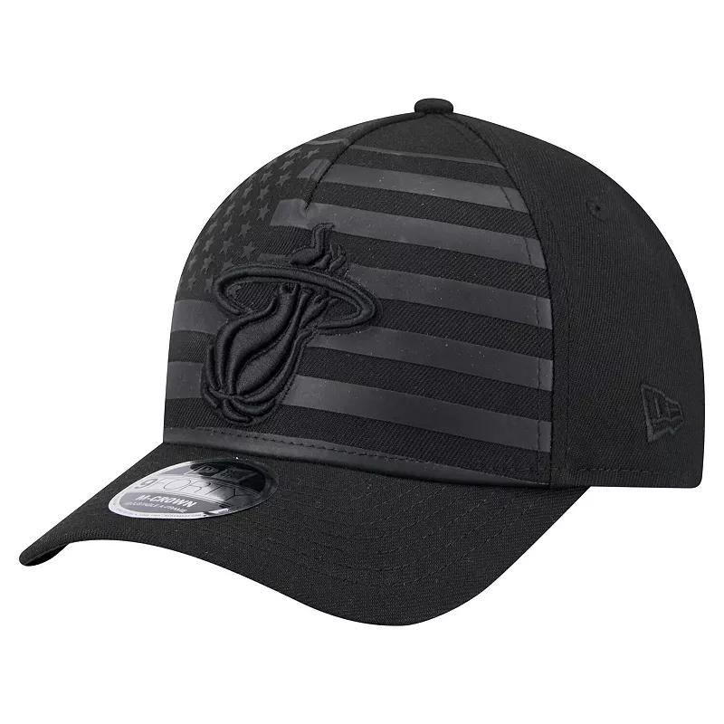 Get pumped for the next Miami Heat game with this Game Day Flag A-Frame 9FORTY Adjustable Hat. Crafted by New Era, it features the teams logo embroidered over the stars and stripes with a black-on-black design. Put a stealthy spin on Miami Heat spirit with this sleek hat.Get pumped for the next Miami Heat game with this Game Day Flag A-Frame 9FORTY Adjustable Hat. Crafted by New Era, it features the teams logo embroidered over the stars and stripes with a black-on-black design. Put a stealthy spin on Miami Heat spirit with this sleek hat.PRODUCT FEATURESTonal United States flag printed on crownWipe clean with a damp clothMaterial: 100% PolyesterBrand: New EraImportedStructured fitOne size fits mostMid and rear panels with eyeletsMid CrownTonal team logo embroidered on crownSolid front panelSnap ClosureCurved billOfficially licensed Size: One Size. Gender: male. Age Group: adult. Material: COTTON.