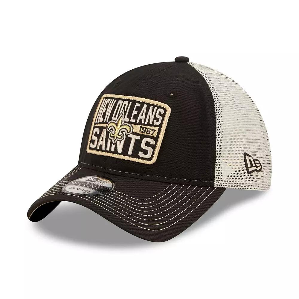 Show off New Orleans Saints team spirit anywhere with this Devoted 9TWENTY hat from New Era. It features a bold patch on the front and mesh panels for extra comfort. The snapback closure makes this New Orleans Saints trucker hat perfect for any outfit.Show off New Orleans Saints team spirit anywhere with this Devoted 9TWENTY hat from New Era. It features a bold patch on the front and mesh panels for extra comfort. The snapback closure makes this New Orleans Saints trucker hat perfect for any outfit.PRODUCT FEATURESMaterial: 100% Cotton - Front Panels and Visor; 100% Polyester - Mid and Rear PanelsSnapbackSolid front panels with eyeletsLow crownCurved billWipe clean with a damp clothOne size fits mostImportedBrand: New EraMesh mid and rear panelsEmbroidered fabric appliqueGray undervisorUnstructured relaxed fitOfficially licensed Size: One Size. Color: Black. Gender: male. Age Group: adult.