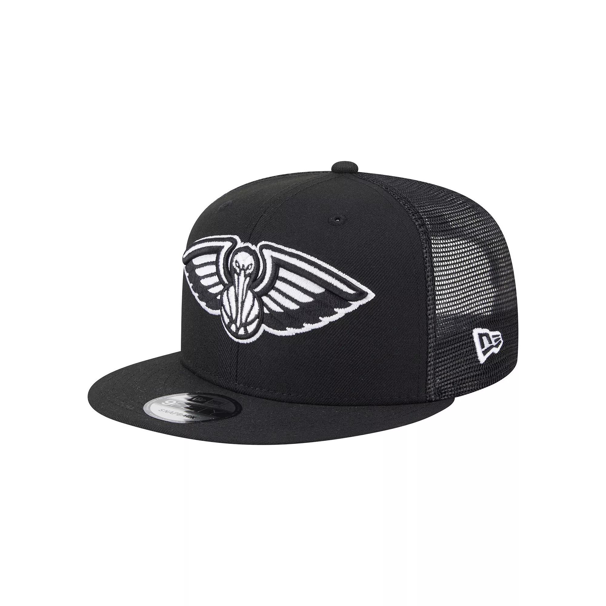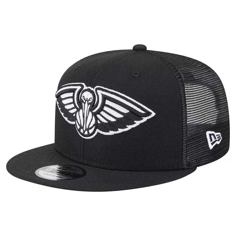 Elevate your New Orleans Pelicans fandom with this New Era 9FIFTY Snapback Trucker Hat. A vibrant embroidered logo shows your devotion loud and proud, while breathable mesh panels offer a comfy feel all day long. Topping it off, a flat bill and high crown add a touch of modern style to your New Orleans Pelicans collection.Elevate your New Orleans Pelicans fandom with this New Era 9FIFTY Snapback Trucker Hat. A vibrant embroidered logo shows your devotion loud and proud, while breathable mesh panels offer a comfy feel all day long. Topping it off, a flat bill and high crown add a touch of modern style to your New Orleans Pelicans collection.PRODUCT FEATURESFlat billHigh CrownTwo solid front panels with eyeletsBrand: New EraImportedStructured fitSnapbackOne size fits mostWipe clean with a damp clothOfficially licensedFour mesh mid and rear panelsEmbroidered graphics with raised detailsMaterial: 100% Polyester Size: One Size. Color: Black. Gender: male. Age Group: adult.