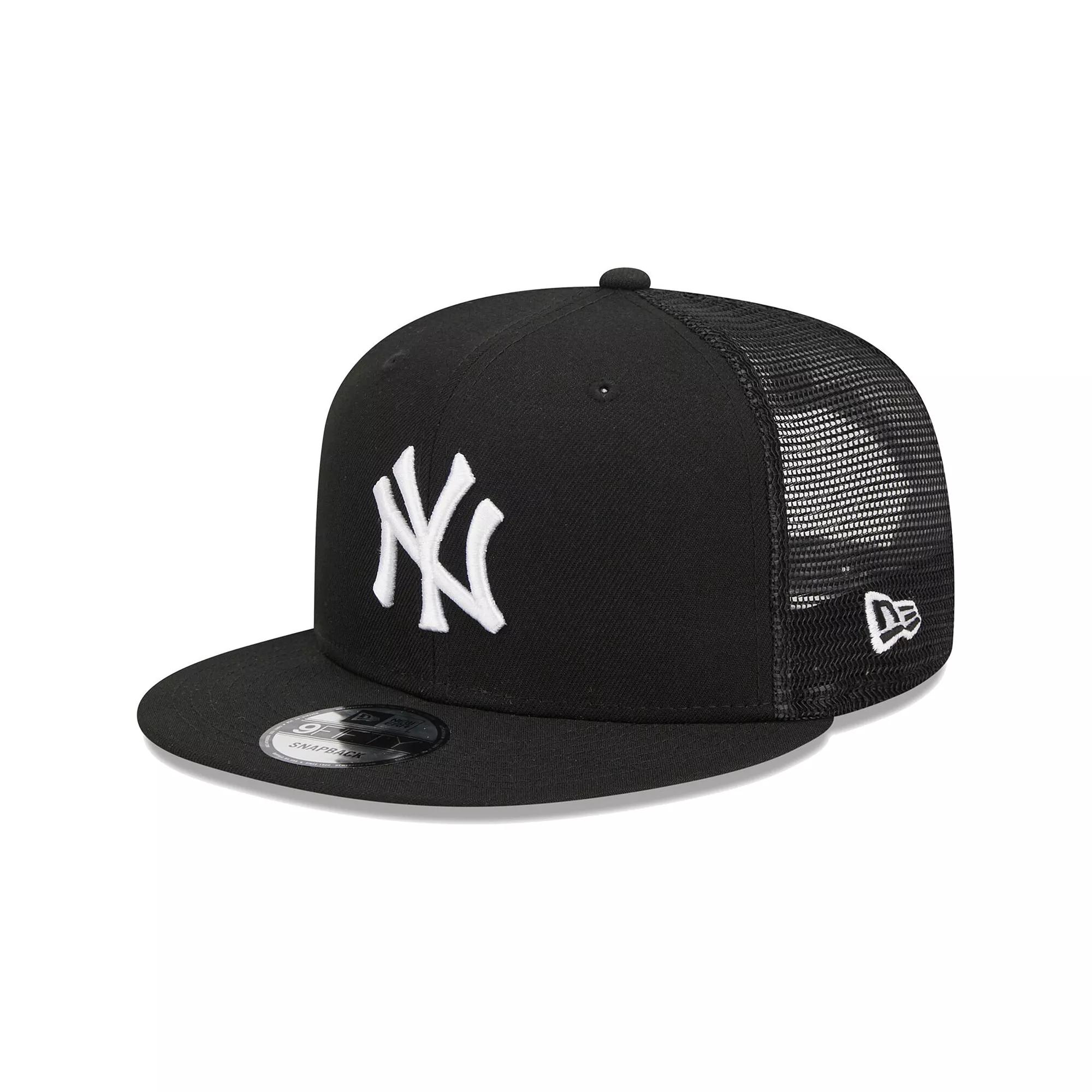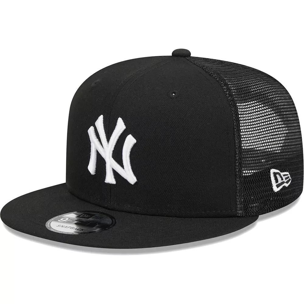Enjoy a bold declaration of your unrelenting New York Yankees fandom each time you throw on this 9FIFTY hat from New Era. The embroidered New York Yankees graphics on the solid front panels put your passion for your MLB favorites front and center, while the mesh rear panels always welcome a pleasant breeze. Cinch the snap closure for the perfect fit and step out with a street-ready look.Enjoy a bold declaration of your unrelenting New York Yankees fandom each time you throw on this 9FIFTY hat from New Era. The embroidered New York Yankees graphics on the solid front panels put your passion for your MLB favorites front and center, while the mesh rear panels always welcome a pleasant breeze. Cinch the snap closure for the perfect fit and step out with a street-ready look.PRODUCT FEATURESStructured fitMaterial: 100% PolyesterFlat billHigh CrownOfficially licensedSolid front panels with eyeletsImportedBrand: New EraFour mesh mid and rear panelsEmbroidered graphicsSnapbackOne size fits mostWipe clean with a damp cloth Size: One Size. Color: Black. Gender: male. Age Group: adult.