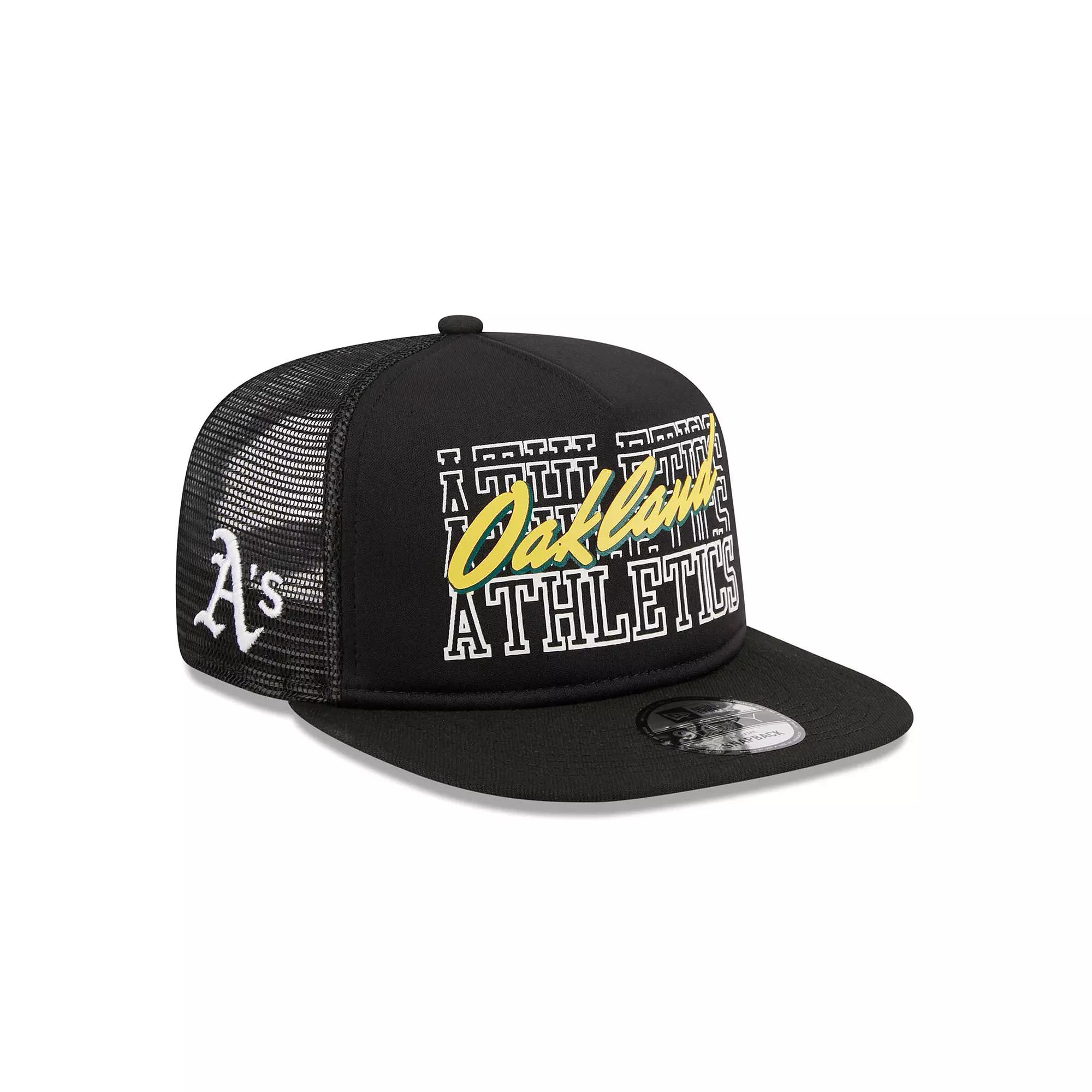 Kick back and relax in this Oakland Athletics Street Team A-Frame Trucker 9FIFTY cap from New Era. This hat features an awesome design and includes stunning Oakland Athletics graphics on the crown and side. Itll instantly become your go-to cap for game days thanks to the comfortable mesh panels and snapback design.