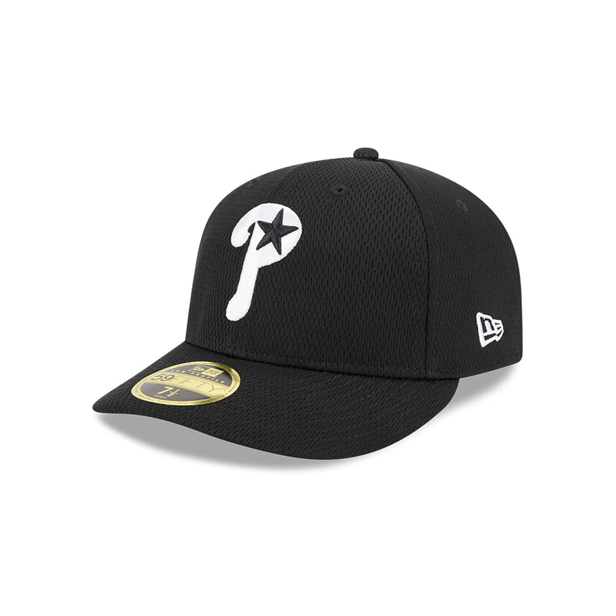 Rep your Philadelphia Phillies with this stylish Low Profile 59FIFTY Fitted Hat. Part of the 2025 MLB Clubhouse collection from New Era, this hat features a spirited design thats perfect for a day at the ballpark or a night on the town. The fitted design will feel like the Philadelphia Phillies equipment manager made this just for you.Rep your Philadelphia Phillies with this stylish Low Profile 59FIFTY Fitted Hat. Part of the 2025 MLB Clubhouse collection from New Era, this hat features a spirited design thats perfect for a day at the ballpark or a night on the town. The fitted design will feel like the Philadelphia Phillies equipment manager made this just for you.PRODUCT FEATURESCurved billWipe clean with a damp clothSilicone undervisor heat-seal patchImportedMaterial: 100% CottonOfficially licensedSix panels with eyeletsRaised embroideryLow CrownStructured fitBrand: New EraThe Low Profile 59FIFTY is the streamlined counterpart to the traditional 59FIFTY with a low-profile crownFitted Size: 6 7/8. Color: Black. Gender: male. Age Group: adult.