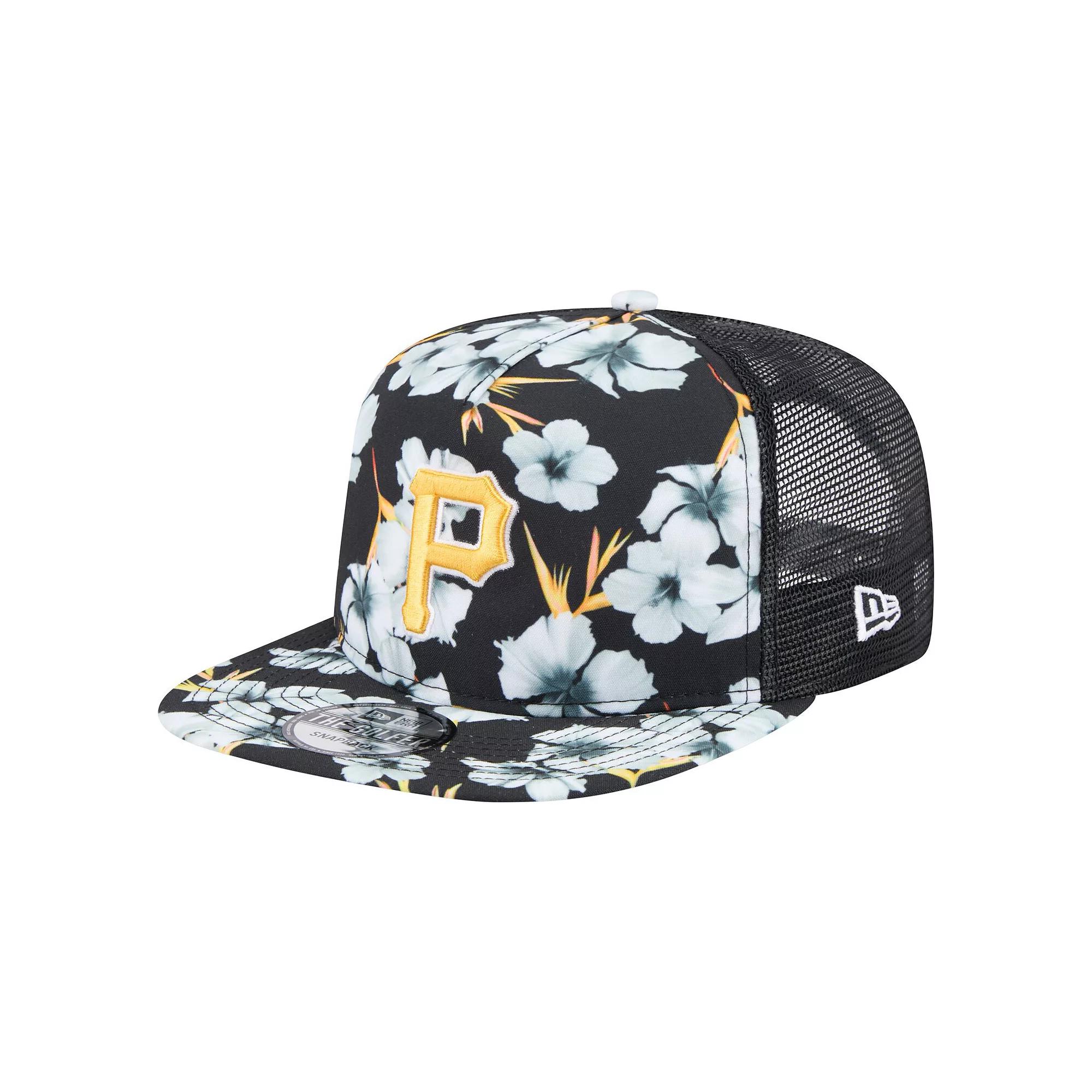 Take your Pittsburgh Pirates fandom on an adventure with this New Era Adventure Pattern Golfer Trucker Snapback Hat. The Golfer silhouette gives this cap a retro look and feel thanks to its semi-structured build, pinched crown and flat visor. With an embroidered Pittsburgh Pirates logo and sublimated floral print, this cap is as stylish as it is comfortable.Take your Pittsburgh Pirates fandom on an adventure with this New Era Adventure Pattern Golfer Trucker Snapback Hat. The Golfer silhouette gives this cap a retro look and feel thanks to its semi-structured build, pinched crown and flat visor. With an embroidered Pittsburgh Pirates logo and sublimated floral print, this cap is as stylish as it is comfortable.PRODUCT FEATURESContrast-color undervisorSublimated floral print on front panel and visorMesh mid and rear panelsFlat bill with ability to curveThe Golfer is a semi-structured cap, with a pinched crown and flat visor which gives a retro look and shape like snapbacks from the 80s and 90sFive-panel constructionMaterial: 100% PolyesterBrand: New EraUnstructured relaxed fitOfficially licensedSnapbackMid CrownWipe clean with a damp clothImportedSolid front panelEmbroidered team logo with raised details Size: One Size. Color: Black. Gender: male. Age Group: adult. Material: COTTON.