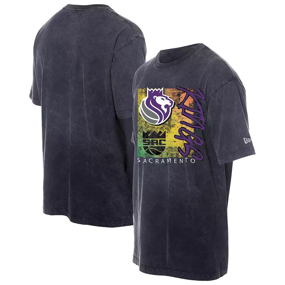 Men's New Era Black Sacramento Kings Distressed Sport Classics Enzyme Washed T-Shirt,