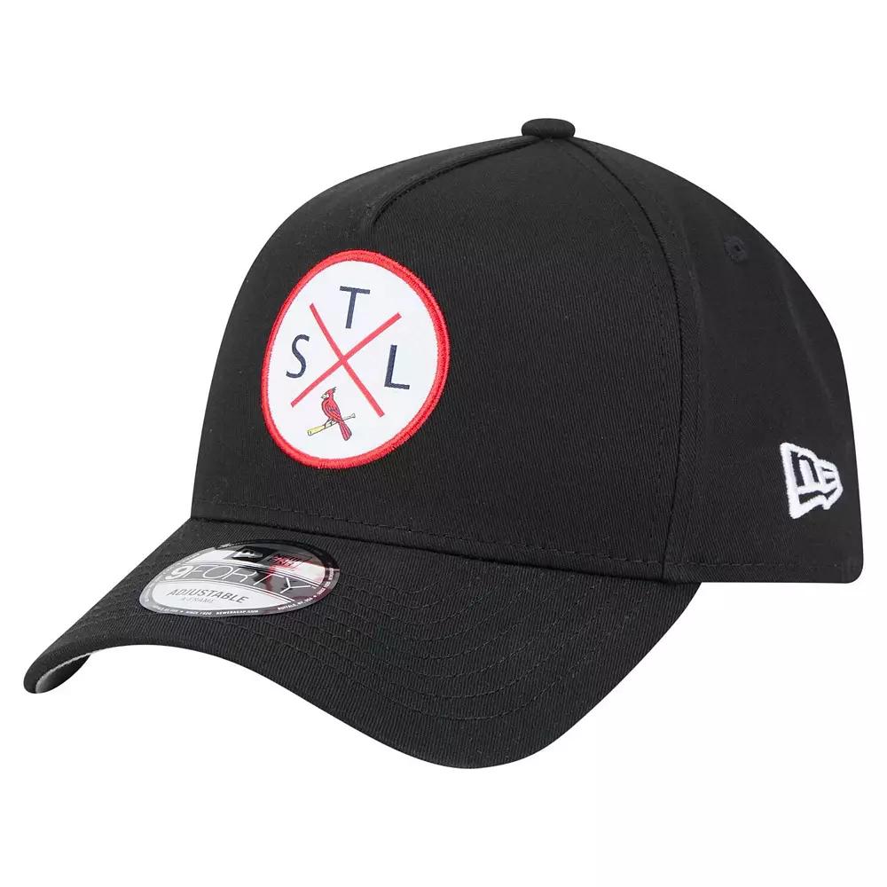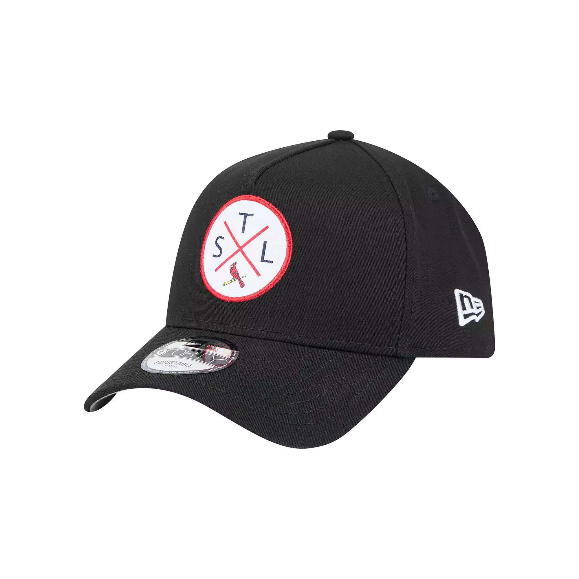 Complete your St. Louis Cardinals game-day look with this New Era 9FORTY A-Frame Adjustable Hat. The 9FORTY A-Frames unique construction merges the front two crown panels into one, creating a high-profile pinched shape and an unmistakable look. With its embroidered applique graphic on the front, this hat lets you rep your St. Louis Cardinals with style.Complete your St. Louis Cardinals game-day look with this New Era 9FORTY A-Frame Adjustable Hat. The 9FORTY A-Frames unique construction merges the front two crown panels into one, creating a high-profile pinched shape and an unmistakable look. With its embroidered applique graphic on the front, this hat lets you rep your St. Louis Cardinals with style.PRODUCT FEATURESMid CrownMid and rear panels with eyeletsUnstructured relaxed fitSnap ClosureOfficially licensedImportedMaterial: 100% CottonCurved billOne size fits mostWipe clean with a damp clothBrand: New EraEmbroidered applique graphic on frontThe 9FORTY A-Frame merges the front two crown panels into one, creating a high-profile pinched shape and an unmistakable look Size: One Size. Color: Black. Gender: male. Age Group: adult.