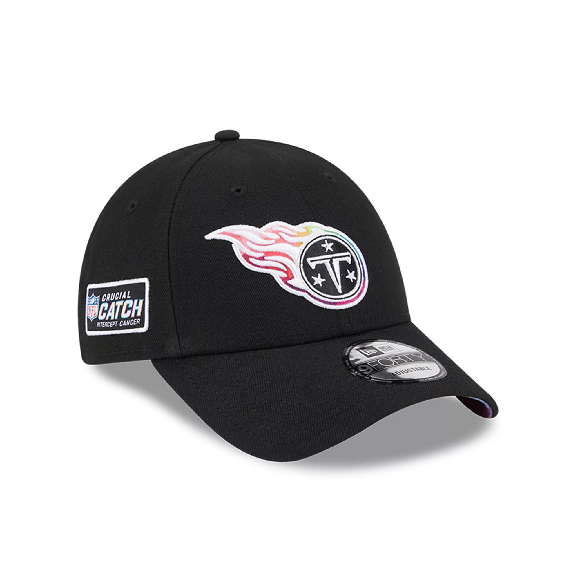 Intercept cancer with the 2023 NFL Crucial Catch Collection from New Era. In the spirit of various cancer ribbon colors, this 9FORTY Adjustable Hat features an embroidered Tennessee Titans logo at the front panels and a patterned undervisor. It also consists of the leagues Crucial Catch logo at the right-wear side on a woven label and a snapback closure at the rear. The NFL does not profit from the sale of Crucial Catch products. Charitable contributions are awarded by the NFL Foundation to the American Cancer Society. For more information, please visit www.NFL.com/CrucialCatch.Intercept cancer with the 2023 NFL Crucial Catch Collection from New Era. In the spirit of various cancer ribbon colors, this 9FORTY Adjustable Hat features an embroidered Tennessee Titans logo at the front panels and a patterned undervisor. It also consists of the leagues Crucial Catch logo at the right-wear side on a woven label and a snapback closure at the rear. The NFL does not profit from the sale of Crucial Catch products. Charitable contributions are awarded by the NFL Foundation to the American Cancer Society. For more information, please visit www.NFL.com/CrucialCatch.PRODUCT FEATURESRaised embroidered graphicsOfficially licensedStructured fitSurface washableMid CrownSnap ClosureCurved billImportedMaterial: 100% PolyesterBrand: New EraOne size fits mostSix panel construction with eyelets Size: One Size. Color: Black. Gender: male. Age Group: adult. Material: COTTON.