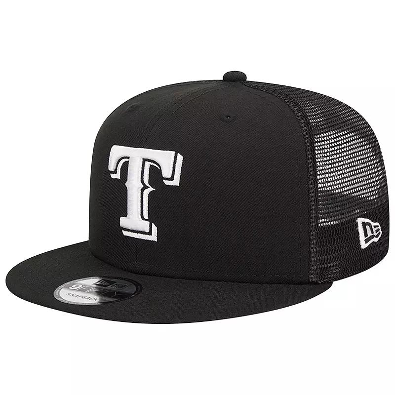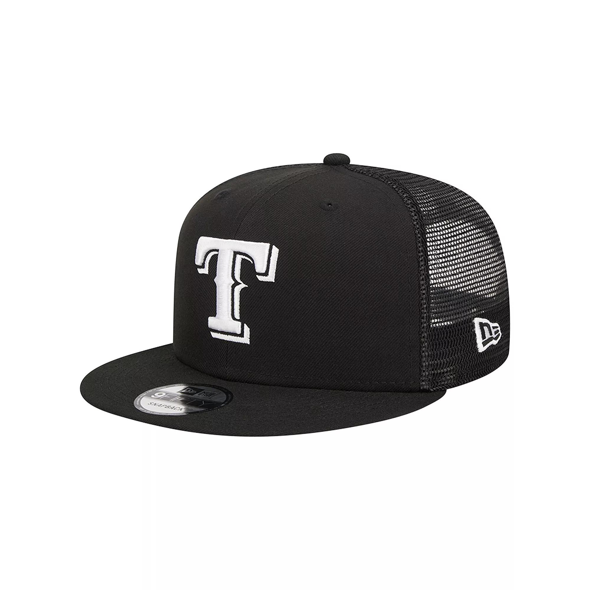 Enjoy a bold declaration of your unrelenting Texas Rangers fandom each time you throw on this 9FIFTY hat from New Era. The embroidered Texas Rangers graphics on the solid front panels put your passion for your MLB favorites front and center, while the mesh rear panels always welcome a pleasant breeze. Cinch the snap closure for the perfect fit and step out with a street-ready look.
