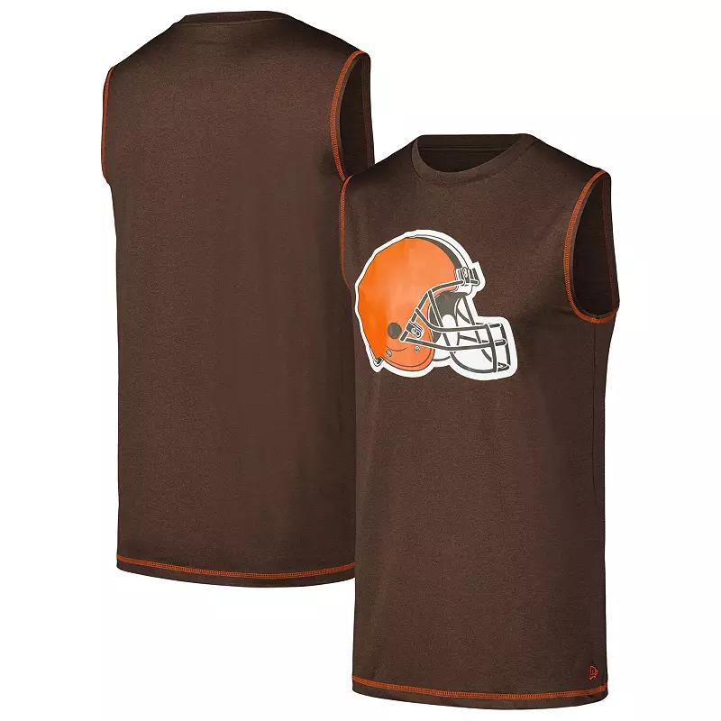 The New Era Mens Brown Cleveland Browns Tank Top is the perfect way to show unwavering support for the Cleveland Browns. Made from a breathable polyester-spandex blend, this tank top features vibrant screen print graphics that showcase team loyalty. Flatlock stitching and a comfortable crew neck make it perfect for game day or any day. Wear Cleveland Browns pride with this sleek, breathable tank top, a must-have for any Browns enthusiast.The New Era Mens Brown Cleveland Browns Tank Top is the perfect way to show unwavering support for the Cleveland Browns. Made from a breathable polyester-spandex blend, this tank top features vibrant screen print graphics that showcase team loyalty. Flatlock stitching and a comfortable crew neck make it perfect for game day or any day. Wear Cleveland Browns pride with this sleek, breathable tank top, a must-have for any Browns enthusiast.PRODUCT FEATURESBrand: New EraImportedCrew neckMachine wash with garment inside out, tumble dry lowSleevelessOfficially licensedMaterial: 90% Polyester/10% SpandexScreen print graphicsFlatlock stitching Color: BRN BROWN. Gender: male. Age Group: adult. Material: COTTON.