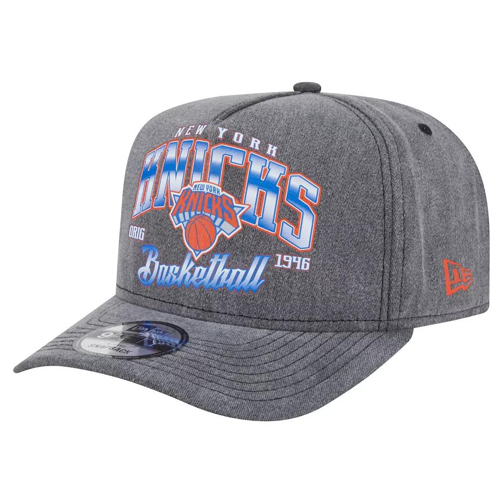 Throw it back with this New York Knicks Washed Pre-Curved 9FIFTY Snapback Hat from New Era. The embroidered graphics with raised details give this hat a premium look and feel, making it a stylish way to represent your New York Knicks. With its pre-curved bill and high crown, this hat offers a classic and comfortable fit thats perfect for everyday wear.Throw it back with this New York Knicks Washed Pre-Curved 9FIFTY Snapback Hat from New Era. The embroidered graphics with raised details give this hat a premium look and feel, making it a stylish way to represent your New York Knicks. With its pre-curved bill and high crown, this hat offers a classic and comfortable fit thats perfect for everyday wear.PRODUCT FEATURESThe 9FIFTY is New Eras classic snapback style, with the same shape as the 59FIFTY but an open back and an adjustable snapback closureOfficially licensedBrand: New EraMaterial: 100% CottonImportedStructured fitHigh CrownContrast-color undervisorSix panels with eyeletsWipe clean with a damp clothSlightly Curved BillSnapbackOne size fits mostScreen print graphics on front Size: One Size. Color: Charco. Gender: male. Age Group: adult.