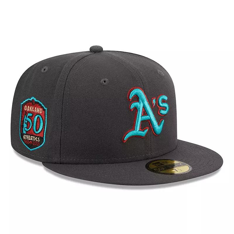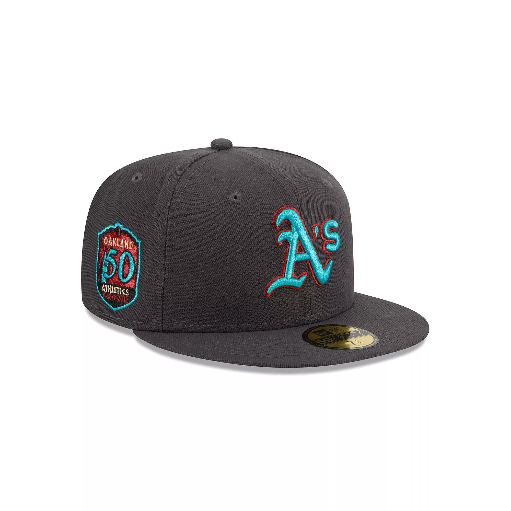When looking for a truly unique way to highlight your love for Major League Baseball, grab this Oakland Athletics 59FIFTY cap from New Era. This awesome hat instantly calls attention to the stunning Oakland Athletics graphics embroidered on the crown and side in a magnificent color design. The undervisor on this fitted hat features a distinctive print pattern that helps draw the eye to your team pride.When looking for a truly unique way to highlight your love for Major League Baseball, grab this Oakland Athletics 59FIFTY cap from New Era. This awesome hat instantly calls attention to the stunning Oakland Athletics graphics embroidered on the crown and side in a magnificent color design. The undervisor on this fitted hat features a distinctive print pattern that helps draw the eye to your team pride.Structured fitSix panels with eyeletsOfficially licensedPrinted undervisorImportedEmbroidered graphics with raised detailsHigh CrownMaterial: 100% PolyesterBrand: New EraFittedFlat bill with ability to curve Size: 7 7/8. Color: Dark Grey. Gender: male. Age Group: adult. Material: COTTON.