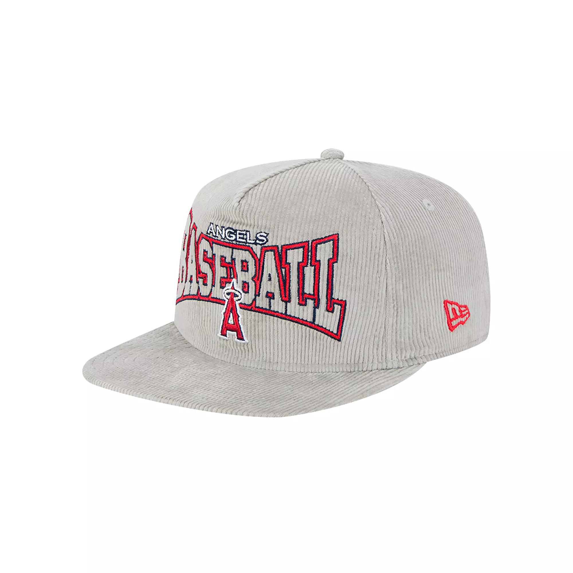Keep the sun off your face while showing off your Los Angeles Angels pride with this Corduroy Golfer Adjustable Hat from New Era. Its five-panel silhouette offers a semi-structured, retro look with a pinched crown and flat visor, reminiscent of classic snapbacks from the 80s and 90s. Made from soft corduroy for a vintage look and feel, this hat also features an embroidered Los Angeles Angels wordmark and logo on the front.Keep the sun off your face while showing off your Los Angeles Angels pride with this Corduroy Golfer Adjustable Hat from New Era. Its five-panel silhouette offers a semi-structured, retro look with a pinched crown and flat visor, reminiscent of classic snapbacks from the 80s and 90s. Made from soft corduroy for a vintage look and feel, this hat also features an embroidered Los Angeles Angels wordmark and logo on the front.PRODUCT FEATURESOfficially licensedSnapbackBrand: New EraMaterial: 100% PolyesterFlat bill with ability to curveUnstructured relaxed fitOne size fits mostWipe clean with a damp clothThe Golfer is a semi-structured cap, with a pinched crown and flat visor which gives a retro look and shape like snapbacks from the 80s and 90sImportedCorduroy fabricFive panel construction with mid and rear eyeletsMid CrownEmbroidered team wordmark and logo on front Size: One Size. Color: Grey. Gender: male. Age Group: adult. Material: COTTON.