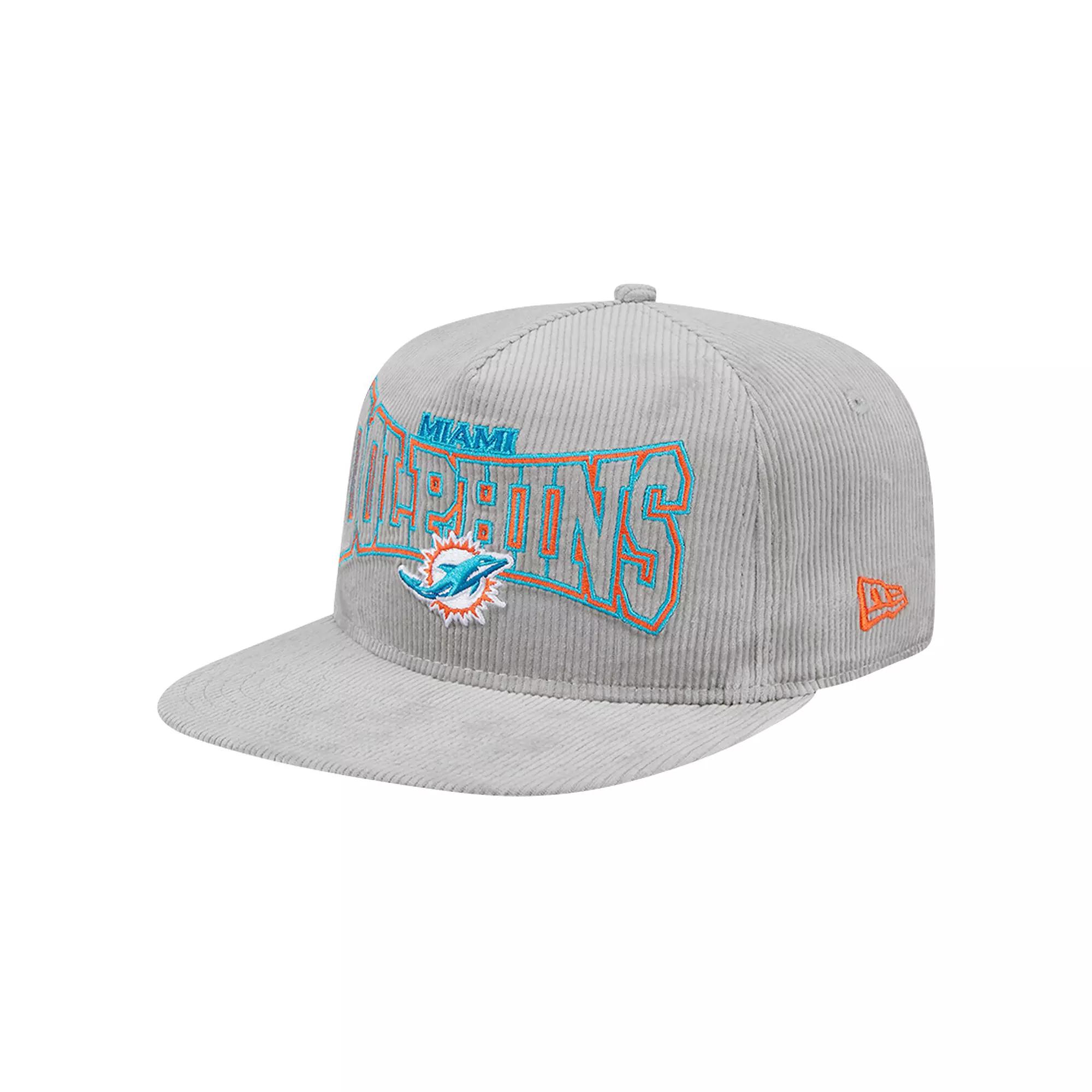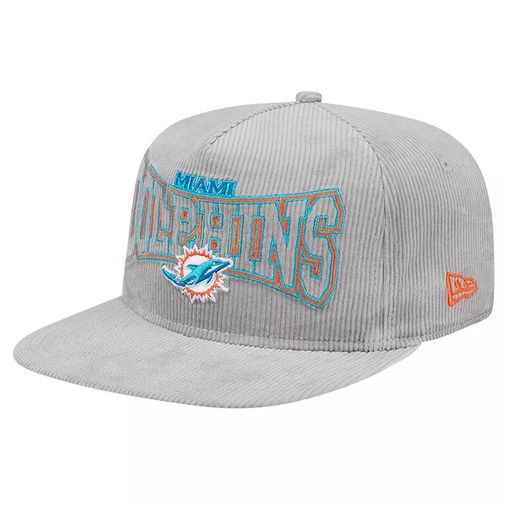 Add a touch of vintage flair to your Miami Dolphins collection with this New Era Corduroy Golfer Adjustable Hat. This hat features an embroidered team wordmark and logo on the front, making it clear who youre rooting for. The corduroy fabric adds a touch of vintage style and texture, making this hat stand out from the crowd.Add a touch of vintage flair to your Miami Dolphins collection with this New Era Corduroy Golfer Adjustable Hat. This hat features an embroidered team wordmark and logo on the front, making it clear who youre rooting for. The corduroy fabric adds a touch of vintage style and texture, making this hat stand out from the crowd.PRODUCT FEATURESUnstructured relaxed fitMaterial: 100% PolyesterBrand: New EraImportedFlat billFive panel construction with mid and rear eyeletsOne size fits mostWipe clean with a damp clothEmbroidered team wordmark and logo on frontOfficially licensedCorduroy fabricSnapbackMid Crown Size: One Size. Color: Grey. Gender: male. Age Group: adult.