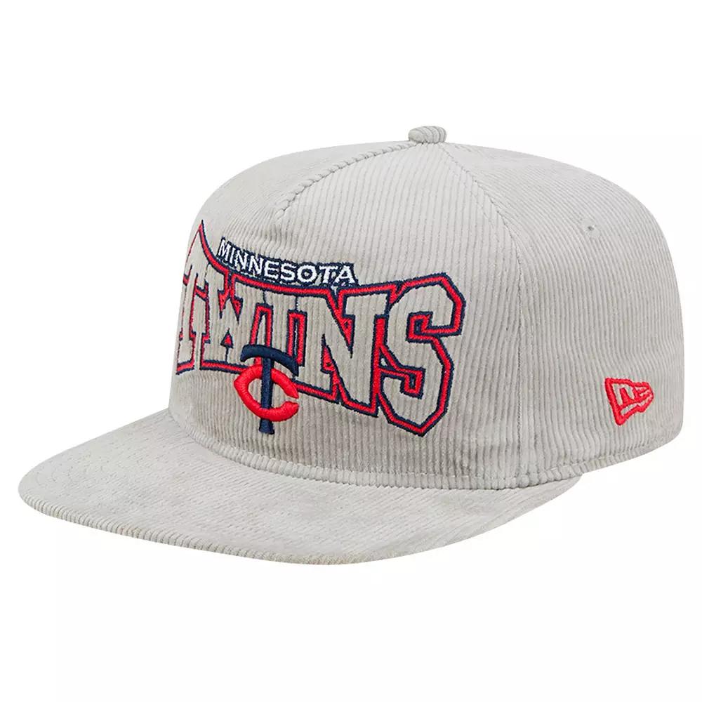 Keep the sun off your face while showing off your Minnesota Twins pride with this Corduroy Golfer Adjustable Hat from New Era. Its five-panel silhouette offers a semi-structured, retro look with a pinched crown and flat visor, reminiscent of classic snapbacks from the 80s and 90s. Made from soft corduroy for a vintage look and feel, this hat also features an embroidered Minnesota Twins wordmark and logo on the front.Keep the sun off your face while showing off your Minnesota Twins pride with this Corduroy Golfer Adjustable Hat from New Era. Its five-panel silhouette offers a semi-structured, retro look with a pinched crown and flat visor, reminiscent of classic snapbacks from the 80s and 90s. Made from soft corduroy for a vintage look and feel, this hat also features an embroidered Minnesota Twins wordmark and logo on the front.PRODUCT FEATURESOfficially licensedMid CrownUnstructured relaxed fitWipe clean with a damp clothThe Golfer is a semi-structured cap, with a pinched crown and flat visor which gives a retro look and shape like snapbacks from the 80s and 90sFive panel construction with mid and rear eyeletsBrand: New EraCorduroy fabricSnapbackImportedOne size fits mostEmbroidered team wordmark and logo on frontFlat bill with ability to curveMaterial: 100% Polyester Size: One Size. Color: Grey. Gender: male. Age Group: adult. Material: Cotton.