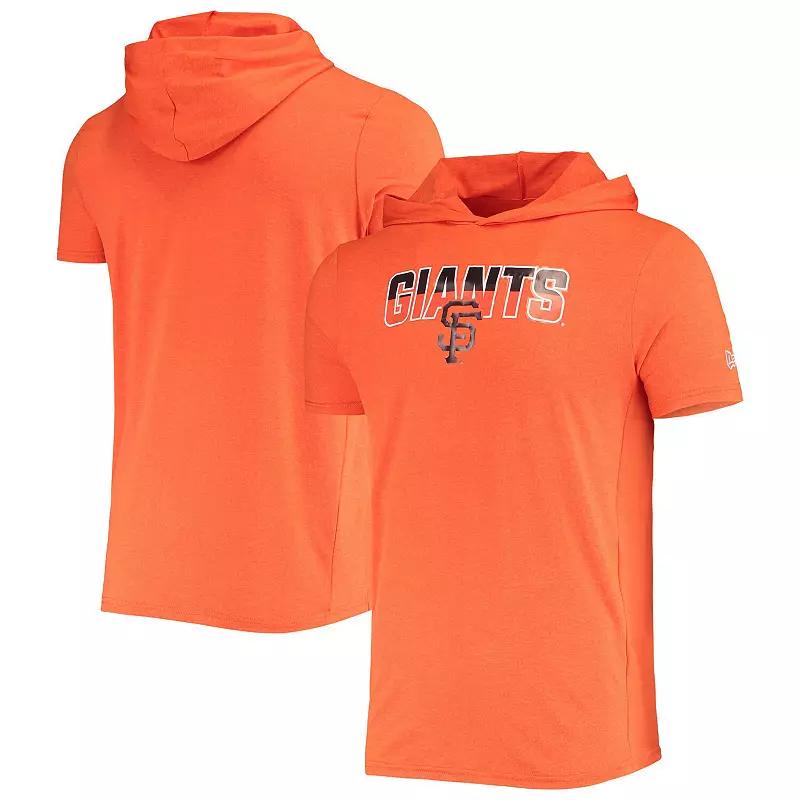Grab a fashion-forward top to help you display your unwavering San Francisco Giants pride with this hoodie T-shirt from New Era. Along with lightweight construction for optimal comfort, this tee offers a hood for additional coverage. Best of all, the powerful San Francisco Giants graphics show off your team spirit, no matter the time or place.Grab a fashion-forward top to help you display your unwavering San Francisco Giants pride with this hoodie T-shirt from New Era. Along with lightweight construction for optimal comfort, this tee offers a hood for additional coverage. Best of all, the powerful San Francisco Giants graphics show off your team spirit, no matter the time or place.PRODUCT FEATURESOfficially licensedMachine wash, tumble dry lowHoodedBrand: New EraMaterial: 90% Polyester/10% SpandexShort sleeveImportedHeat-sealed graphicsHood without drawstring Color: Orange. Gender: male. Age Group: adult.
