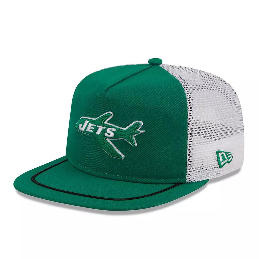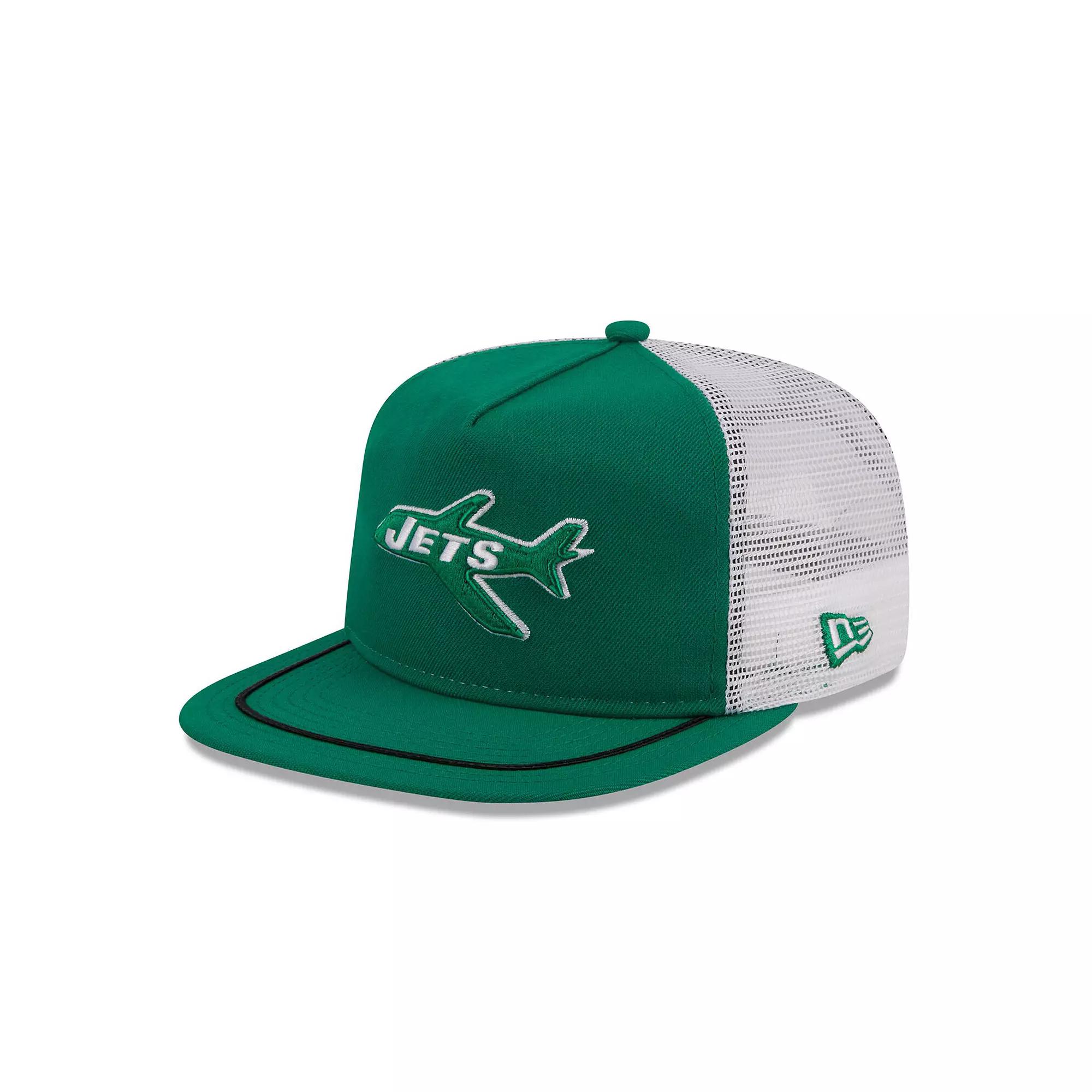 Stay shaded in sunny weather with this New York Jets Original Classic Golfer hat from New Era. It features an embroidered logo on the front and a contrast undervisor for a dash of detail. The mesh panels and snapback closure makes this New York Jets hat perfect for any adventure.Stay shaded in sunny weather with this New York Jets Original Classic Golfer hat from New Era. It features an embroidered logo on the front and a contrast undervisor for a dash of detail. The mesh panels and snapback closure makes this New York Jets hat perfect for any adventure.PRODUCT FEATURESEmbroidered graphics with raised detailsOfficially licensedFlat billOne size fits mostMesh mid and rear panelsImportedMaterial: 100% PolyesterSnapbackWipe clean with a damp clothGreen undervisorBrand: New EraUnstructured relaxed fitMid CrownSolid front panel Size: One Size. Gender: male. Age Group: adult.
