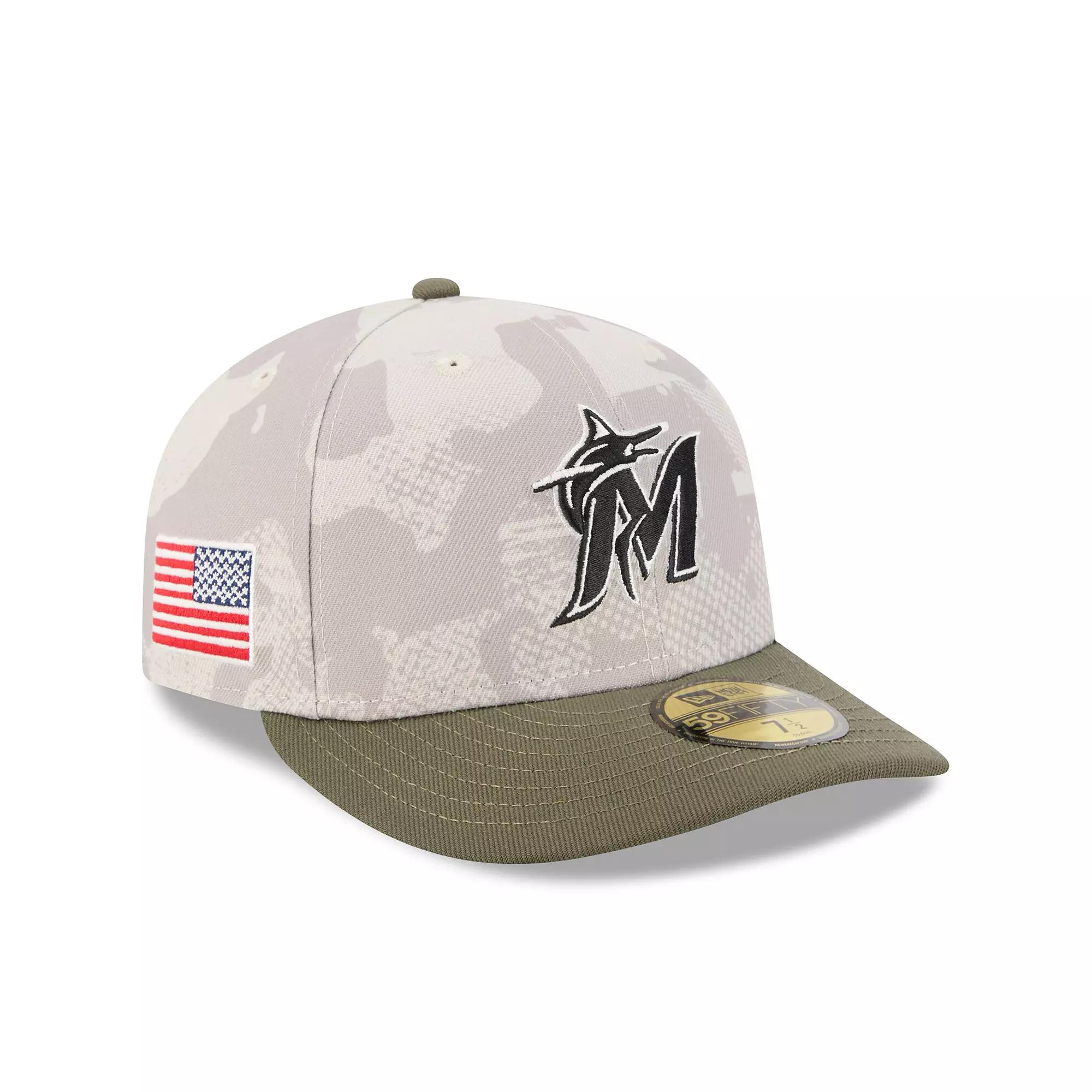 Show your love for the Miami Marlins with patriotic flair when you don this 2025 Armed Forces Day 59FIFTY Fitted Hat. This officially licensed New Era hat features meticulously crafted embroidered graphics with raised details, adding a touch of sophistication to your game-day look. With its six-panel construction and high crown, this 59FIFTY fitted hat provides a timeless and comfortable fit thats perfect for any Miami Marlins fan. Major League Baseball directs 100% of its royalties from on-field Armed Forces Weekend socks and caps to MLB Charities, a 501(c)(3) nonprofit. MLB Charities will then donate those funds to several military organizations that support active service members, veterans and families in the areas of inclusivity, mental health and essential resourcesShow your love for the Miami Marlins with patriotic flair when you don this 2025 Armed Forces Day 59FIFTY Fitted Hat. This officially licensed New Era hat features meticulously crafted embroidered graphics with raised details, adding a touch of sophistication to your game-day look. With its six-panel construction and high crown, this 59FIFTY fitted hat provides a timeless and comfortable fit thats perfect for any Miami Marlins fan. Major League Baseball directs 100% of its royalties from on-field Armed Forces Weekend socks and caps to MLB Charities, a 501(c)(3) nonprofit. MLB Charities will then donate those funds to several military organizations that support active service members, veterans and families in the areas of inclusivity, mental health and essential resourcesPRODUCT FEATURESOfficially licensedBrand: New EraSlightly Curved BillU.S. flag patch on right panel: To reflect military uniforms and tradition, the flag is positioned so that the stars face the front and the stripes are behind. This gives the effect of the flag flying in the breeze as the wearer moves forward.Material: 100% PolyesterFittedHigh CrownImportedStructured fitEmbroidered graphics with raised detailsWipe clean with a damp clothSix panels with eyelets Size: 7 5/8. Color: Lt Bei. Gender: male. Age Group: adult. Material: COTTON.