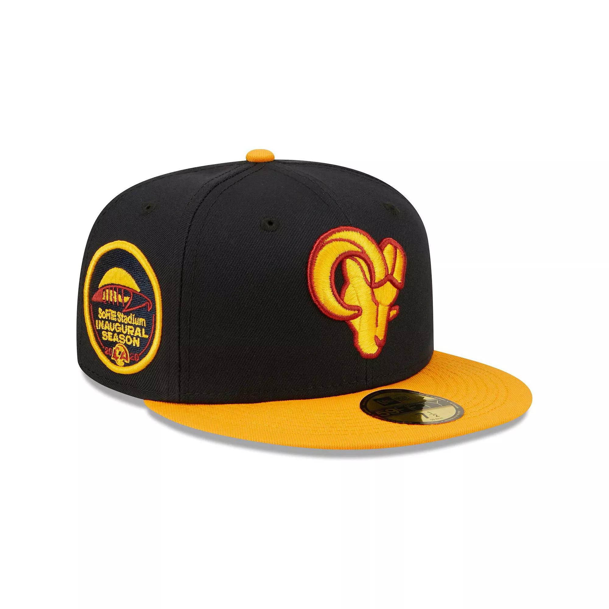 Upgrade your headwear game by grabbing this Los Angeles Rams SoFi Stadium Inaugural Season 59FIFTY Fitted Hat from New Era. Highlighting your loyalty to the team will be super easy thanks to the distinctive Los Angeles Rams graphics embroidered on the crown.Upgrade your headwear game by grabbing this Los Angeles Rams SoFi Stadium Inaugural Season 59FIFTY Fitted Hat from New Era. Highlighting your loyalty to the team will be super easy thanks to the distinctive Los Angeles Rams graphics embroidered on the crown.PRODUCT FEATURESStructured fitHigh CrownSix panels with eyeletsMaterial: 100% PolyesterOfficially licensedFlat bill with ability to curveGray undervisorFittedBrand: New EraImportedEmbroidered graphics with raised details Size: 8. Color: Navy. Gender: male. Age Group: adult.
