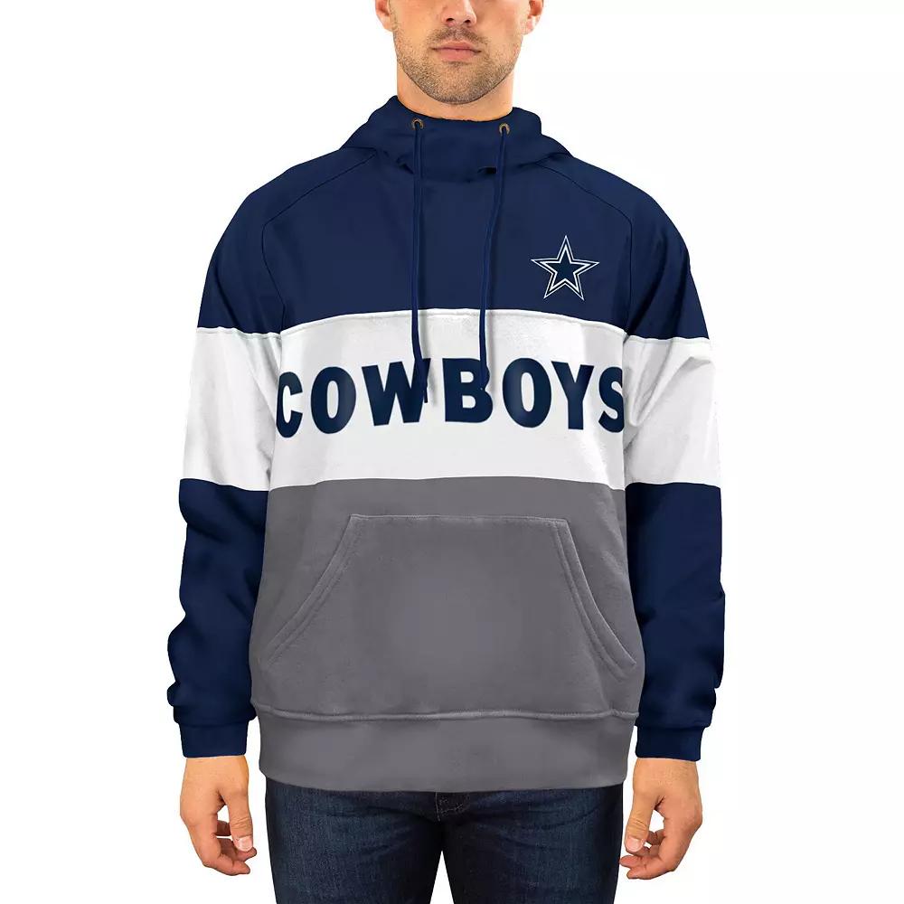 Add the perfect extra layer to your game day look with this Dallas Cowboys fleece hoodie from New Era. This pullover features a team wordmark graphic across the chest, a front pouch pocket and comes complete with an adjustable drawstring hood. When you need some additional coverage, enjoy this kickoff-ready piece of Dallas Cowboys gear.
