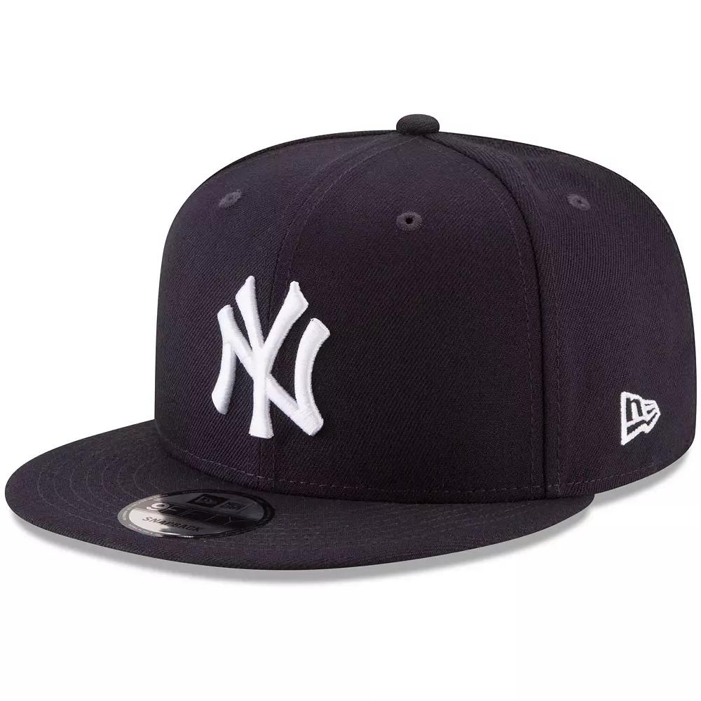 New Era Lifestyle snapback hat Adjustable strap New York Yankees logo embroidery on front Solid throughout New Era logo embroidery on side Polyester fabric for durability and fast dry Fit: Adjustable Fit Fabric: 100% polyester | New Era New York Yankees 9Fifty Snapback Hat in Navy | Polyester | Jimmy Jazz