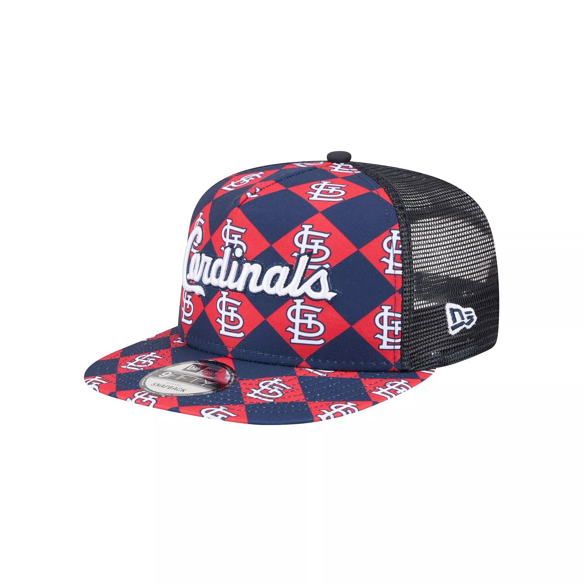 Add a flashy new piece of headwear to your St. Louis Cardinals collection with this Proud A-Frame 9FIFTY trucker hat from New Era. It features an embroidered wordmark across the solid front panel, which is decorated with a bold team pattern. An adjustable snapback closure and breathable mesh panels complete the look with added comfort, making this cap a must-have for any St. Louis Cardinals fan.Add a flashy new piece of headwear to your St. Louis Cardinals collection with this Proud A-Frame 9FIFTY trucker hat from New Era. It features an embroidered wordmark across the solid front panel, which is decorated with a bold team pattern. An adjustable snapback closure and breathable mesh panels complete the look with added comfort, making this cap a must-have for any St. Louis Cardinals fan.PRODUCT FEATURESOfficially licensedHigh CrownOne size fits mostSnapbackFlat billImportedStructured fitBrand: New EraMesh mid and rear panelsMaterial: 100% PolyesterSolid front panelPrinted designWipe clean with a damp clothEmbroidered graphics with raised details Size: One Size. Color: CRD NAVY. Gender: male. Age Group: adult. Material: COTTON.