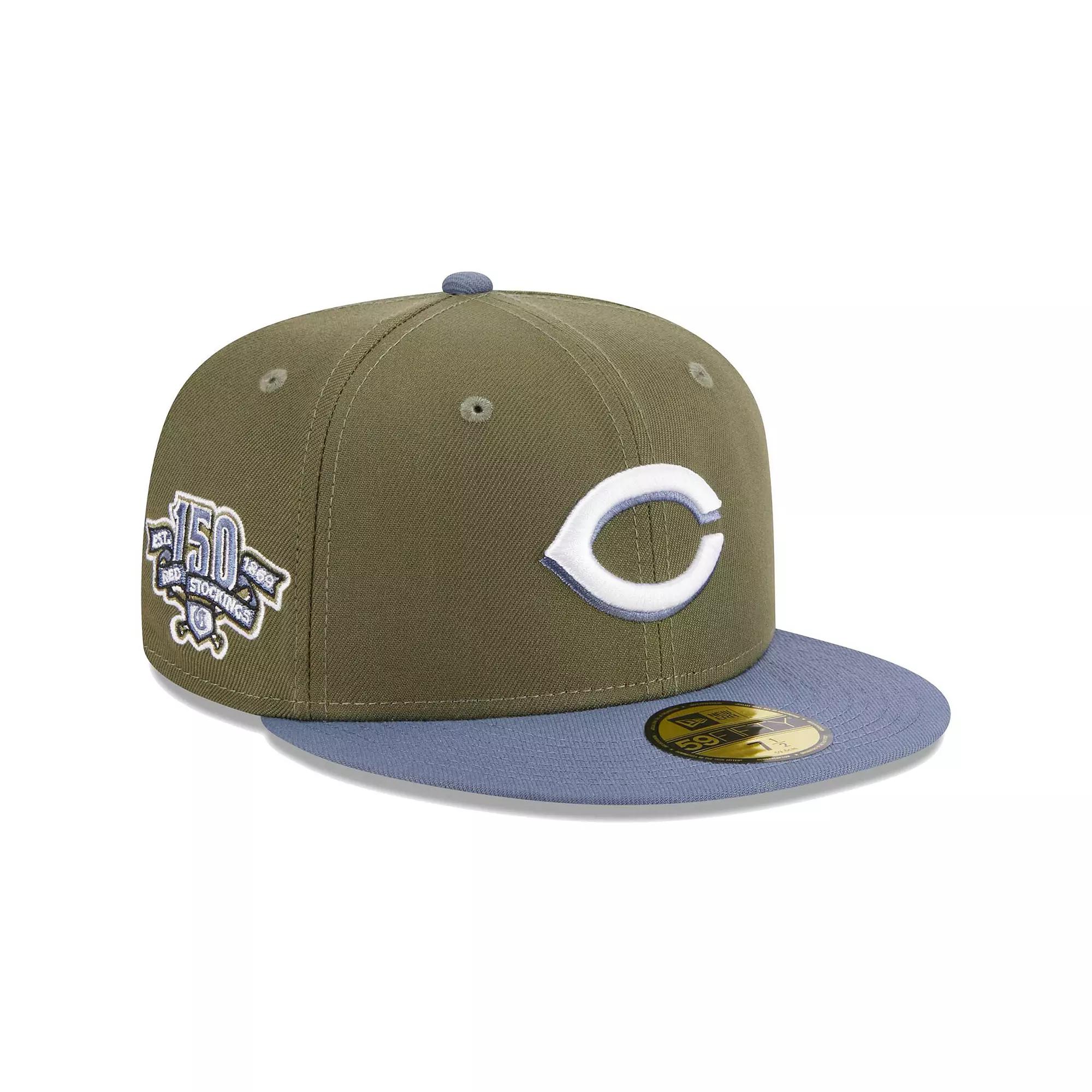 Showcase your unwavering Cincinnati Reds pride by wearing this 59FIFTY cap from New Era. This hat features a unique color scheme of olive and blue, with Cincinnati Reds graphics embroidered on the crown and side. The fitted construction will ensure you stay comfortable wherever you go.Showcase your unwavering Cincinnati Reds pride by wearing this 59FIFTY cap from New Era. This hat features a unique color scheme of olive and blue, with Cincinnati Reds graphics embroidered on the crown and side. The fitted construction will ensure you stay comfortable wherever you go.PRODUCT FEATURESMaterial: 100% PolyesterGray undervisorFittedImportedHigh CrownBrand: New EraOfficially licensedEmbroidered graphics with raised detailsFlat bill with ability to curveSix panels with eyeletsStructured fit Size: 7 3/8. Color: Multicolor. Gender: male. Age Group: adult.