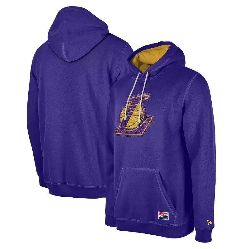 Showcase your Los Angeles Lakers pride in style with this New Era Purple Los Angeles Lakers Corduroy Applique Pullover Hoodie. This midweight hoodie features a contrast-color hood lining and front pouch pocket, making it the perfect grab for moderate temperatures. The corduroy team logo appliqu on the chest adds a touch of texture and dimension for a standout look.Showcase your Los Angeles Lakers pride in style with this New Era Purple Los Angeles Lakers Corduroy Applique Pullover Hoodie. This midweight hoodie features a contrast-color hood lining and front pouch pocket, making it the perfect grab for moderate temperatures. The corduroy team logo appliqu on the chest adds a touch of texture and dimension for a standout look.PRODUCT FEATURESPulloverHoodedMachine washLong sleeveOfficially licensedMaterial: 60% Cotton/40% PolyesterFront pouch pocketCorduroy team logo applique on the chestEmbroidered woven New Era lockertag at hemMidweight hoodie suitable for moderate temperaturesContrast-color hood liningBrand: New Era Gender: male. Age Group: adult.