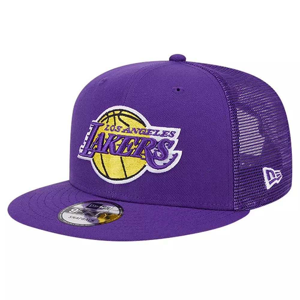 Stay shaded in Los Angeles Lakers style with this Evergreen Meshback 9FIFTY hat from New Era. It features striking graphics over a bold team color. The mesh panels and snapback closure give this Los Angeles Lakers hat all-day comfort.Stay shaded in Los Angeles Lakers style with this Evergreen Meshback 9FIFTY hat from New Era. It features striking graphics over a bold team color. The mesh panels and snapback closure give this Los Angeles Lakers hat all-day comfort.PRODUCT FEATURESTwo solid front panels with eyeletsGray undervisorSnapbackWipe clean with a damp clothHigh CrownStructured fitMaterial: 100% PolyesterOne size fits mostEmbroidered graphics with raised detailsWoven clip tagMid and rear mesh panelsBrand: New EraFlat billImportedOfficially licensed Size: One Size. Color: Purple. Gender: male. Age Group: adult.