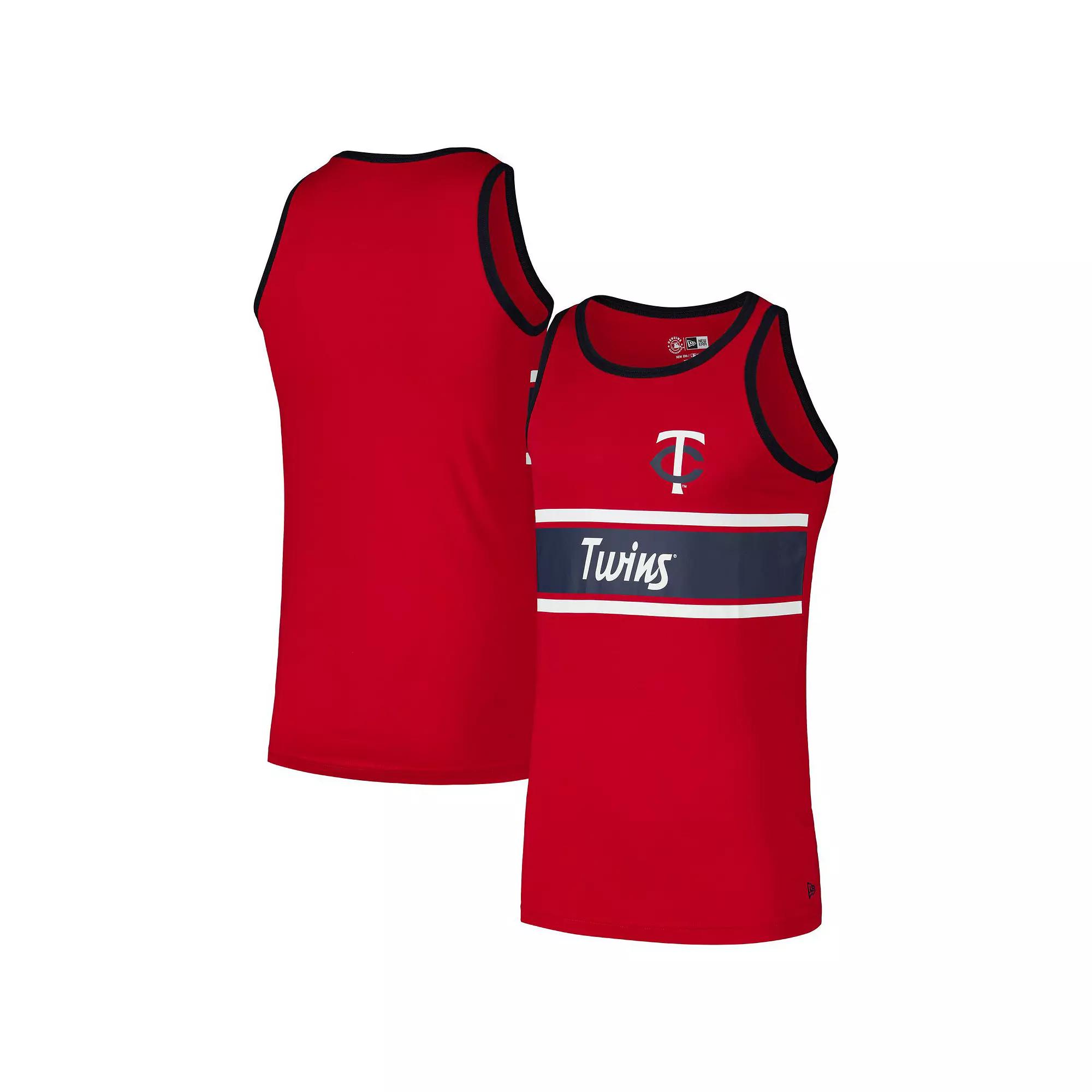 Rock a fresh take on Minnesota Twins pride with this New Era Jersey Ringer Tank Top. The contrasting trim highlights the team logo printed at the left chest, making it clear which team you support. This ringer tank is a must-have for any Minnesota Twins fan looking to rep their team in classic MLB style.Rock a fresh take on Minnesota Twins pride with this New Era Jersey Ringer Tank Top. The contrasting trim highlights the team logo printed at the left chest, making it clear which team you support. This ringer tank is a must-have for any Minnesota Twins fan looking to rep their team in classic MLB style.PRODUCT FEATURESOfficially licensedContrasting trim highlights the team logo printed at left chestTeam name accentuated by contrasting stripesSleevelessCrew neck for a classic lookBrand: New EraMaterial: 100% CottonImportedMachine wash with garment inside out, tumble dry low Color: Red. Gender: male. Age Group: adult.