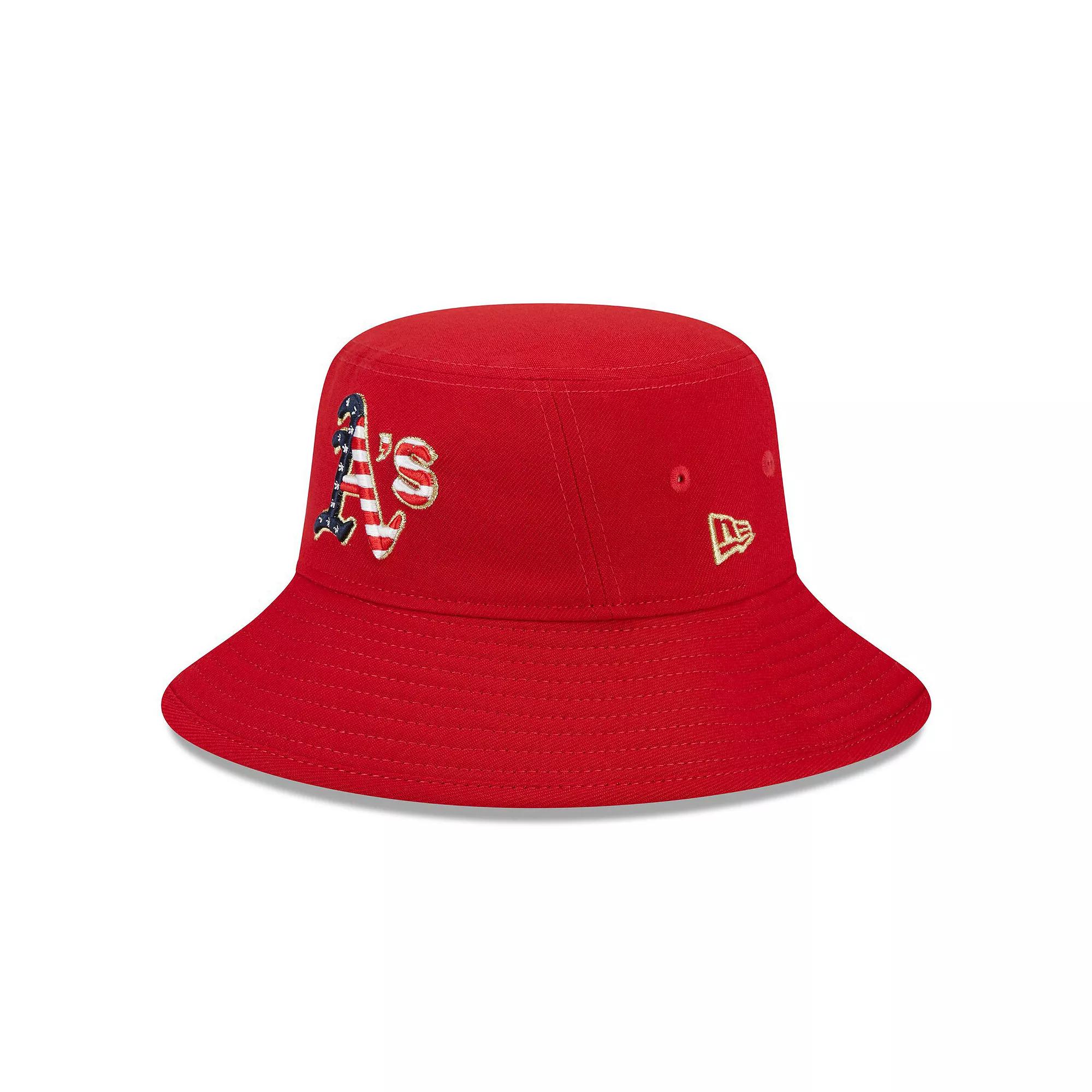 Baseball and the Fourth of July are a great American duo. Celebrate Independence Day with this Oakland Athletics Bucket Hat from New Era. Whether youre at the ballpark or the barbeque, these American Oakland Athletics graphics will be a hit wherever you go.Baseball and the Fourth of July are a great American duo. Celebrate Independence Day with this Oakland Athletics Bucket Hat from New Era. Whether youre at the ballpark or the barbeque, these American Oakland Athletics graphics will be a hit wherever you go.PRODUCT FEATURESSurface washableBrand: New EraImportedEmbroidered graphicsMaterial: 95% Polyester/5% Spandex - Crown; 100% Cotton - UndervisorOfficially licensedOne size fits most Size: One Size. Gender: male. Age Group: adult.