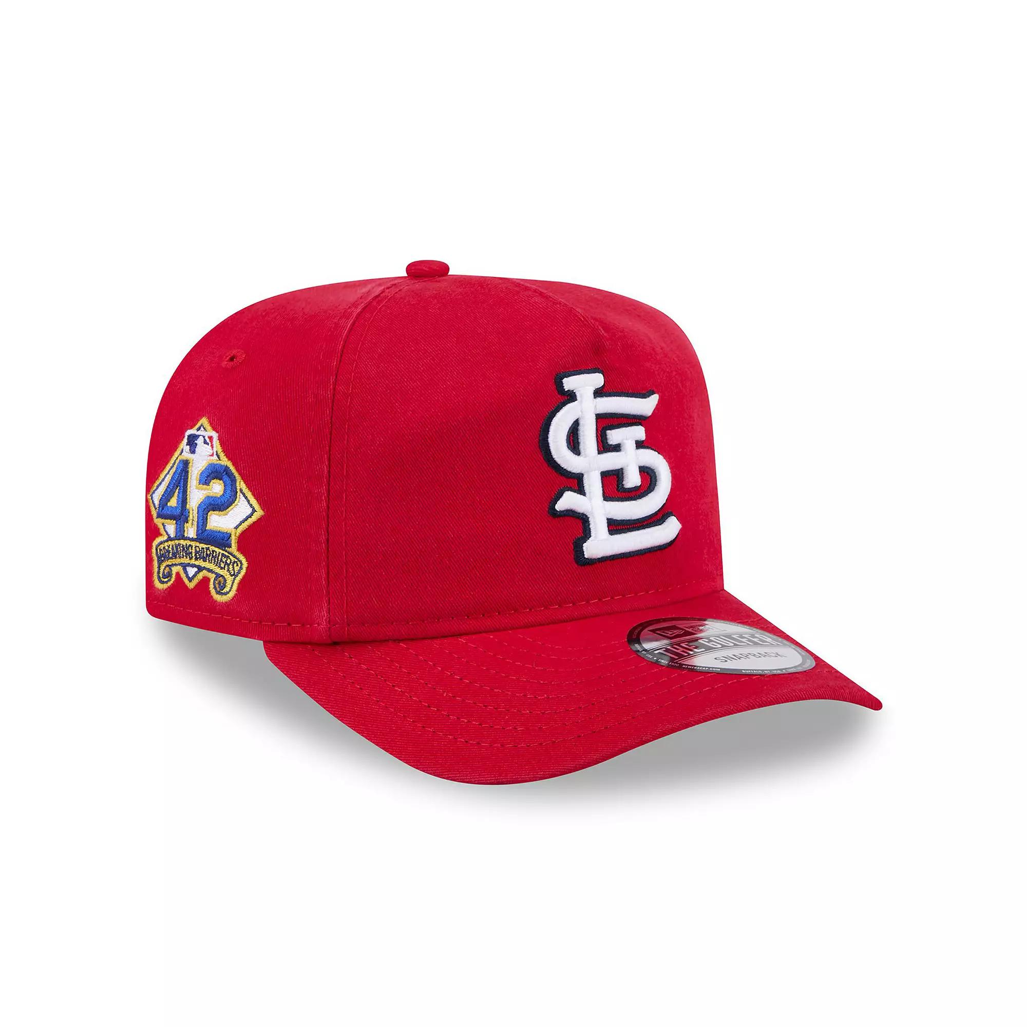Celebrate Jackie Robinson and the incredible impact he had on the Major Leagues with this Jackie Robinson Day St. Louis Cardinals New Era Golfer Adjustable Hat. Embroidered graphics featuring Jackie Robinsons number and crisp St. Louis Cardinals graphics, this hat is a perfect celebration of the Hall of Famer and your favorite MLB team.Celebrate Jackie Robinson and the incredible impact he had on the Major Leagues with this Jackie Robinson Day St. Louis Cardinals New Era Golfer Adjustable Hat. Embroidered graphics featuring Jackie Robinsons number and crisp St. Louis Cardinals graphics, this hat is a perfect celebration of the Hall of Famer and your favorite MLB team.PRODUCT FEATURESStructured fitFlat bill with ability to curveWipe clean with a damp clothSnapbackMid CrownFive panels with mid and rear eyeletsOne size fits mostEmbroidered facsimile signature on underbillOfficially licensedEmbroidered graphics with raised detailsMaterial: 100% PolyesterImportedColor contrast underbillBrand: New Era Size: One Size. Gender: male. Age Group: adult.