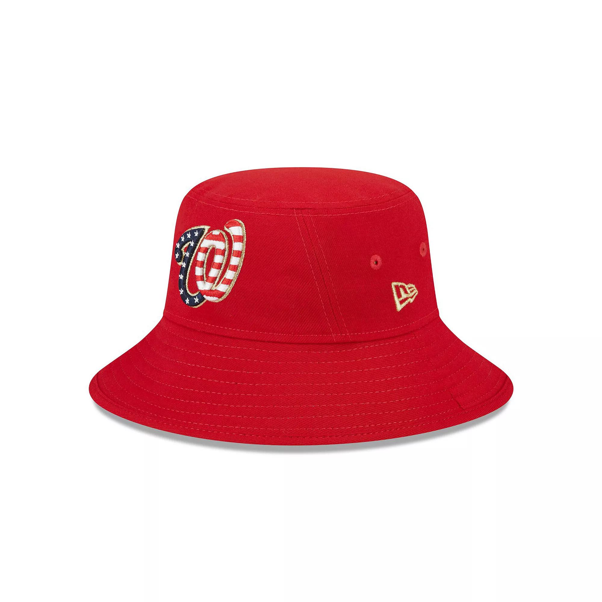 Baseball and the Fourth of July are a great American duo. Celebrate Independence Day with this Washington Nationals Bucket Hat from New Era. Whether youre at the ballpark or the barbeque, these American Washington Nationals graphics will be a hit wherever you go.Baseball and the Fourth of July are a great American duo. Celebrate Independence Day with this Washington Nationals Bucket Hat from New Era. Whether youre at the ballpark or the barbeque, these American Washington Nationals graphics will be a hit wherever you go.PRODUCT FEATURESMaterial: 95% Polyester/5% Spandex - Crown; 100% Cotton - UndervisorOne size fits mostOfficially licensedEmbroidered graphicsSurface washableBrand: New EraImported Size: One Size. Gender: male. Age Group: adult.
