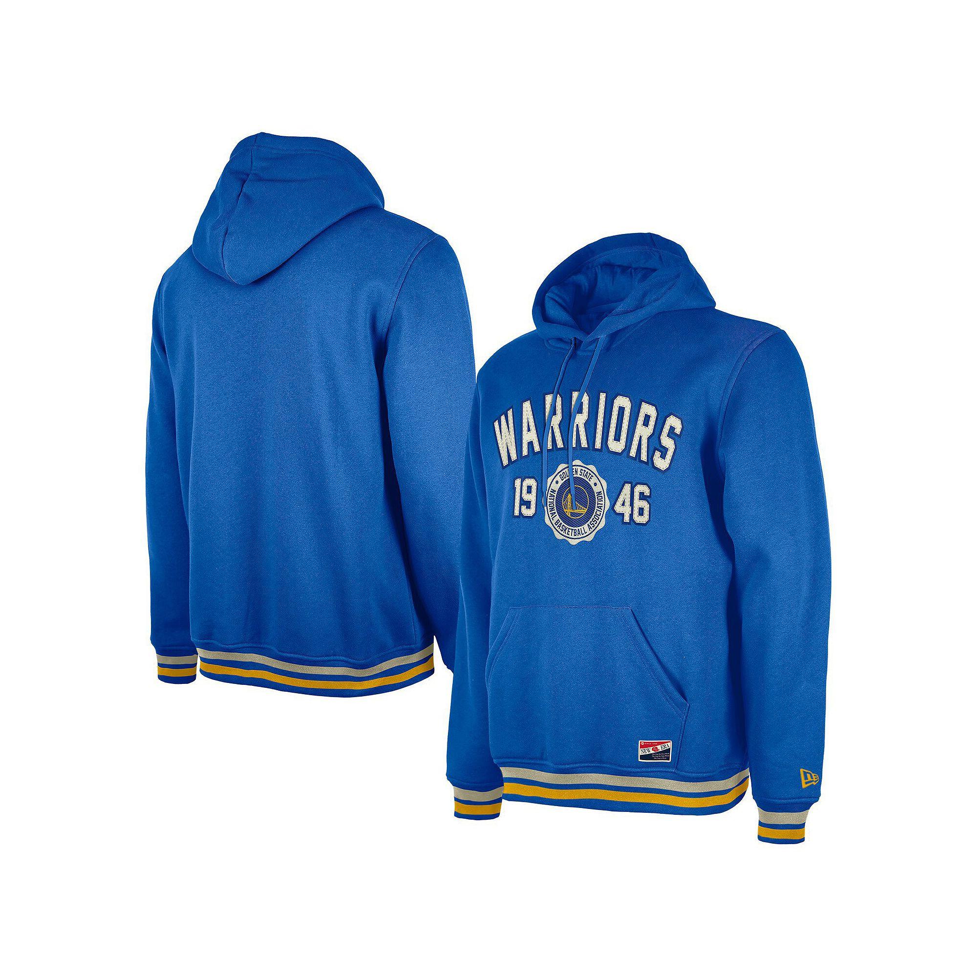 Add some vintage flair to your Golden State Warriors wardrobe with this New Era Throwback Vintage Pullover Hoodie. This midweight pullover features an adjustable hoodie for maximum coverage during those cool evenings and front pouch pockets can be used to keep your hands warm or store personal items. The Golden State Warriors graphic applique embroidered on the front chest adds throwback vibes that's sure to turn heads.Add some vintage flair to your Golden State Warriors wardrobe with this New Era Throwback Vintage Pullover Hoodie. This midweight pullover features an adjustable hoodie for maximum coverage during those cool evenings and front pouch pockets can be used to keep your hands warm or store personal items. The Golden State Warriors graphic applique embroidered on the front chest adds throwback vibes that's sure to turn heads.PRODUCT FEATURESHoodedAdjustable hoodie for maximum coverageTeam graphics and established date applique embroidered on front chest with raised detailsMachine wash, tumble dry lowBrand: New EraPulloverMaterial: 60% Cotton/40% Polyester - Body; 100% Cotton - Hood LiningImportedOfficially licensedRib-knit cuffs and hem for snug and comfortable fitLong sleeveMidweight hoodie suitable for moderate temperaturesFront pouch pockets to storm personal items Size: XL. Color: Blue. Gender: male. Age Group: adult.