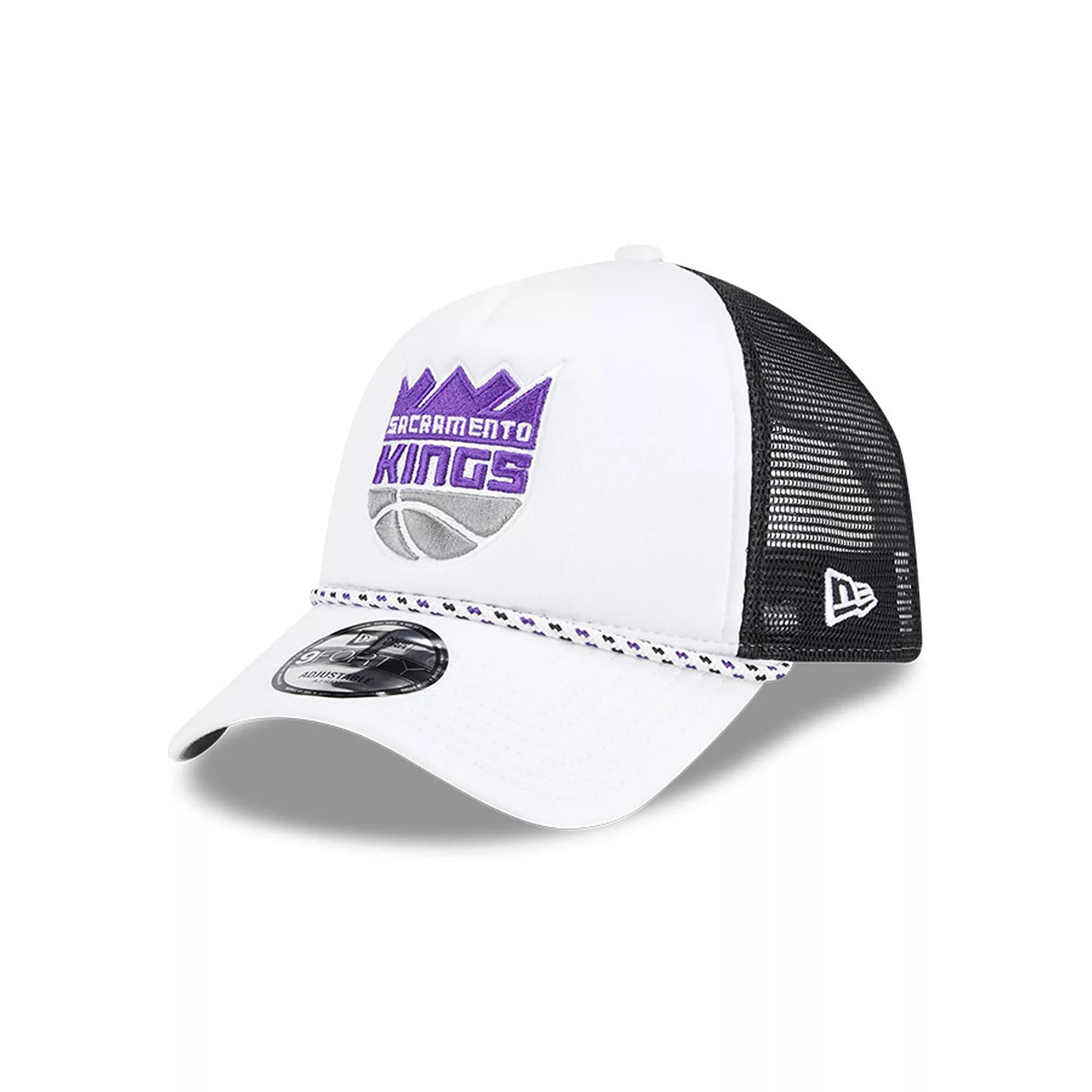 Top off any Sacramento Kings look with this Court Sport Foam A-Frame 9FORTY Trucker hat from New Era. It features an embroidered team graphic on the front crown and a decorative rope embellishment across the visor. Completed with mesh panels in the rear for breathability and comfort, this adjustable cap is an essential piece of headwear for all Sacramento Kings fans.Top off any Sacramento Kings look with this Court Sport Foam A-Frame 9FORTY Trucker hat from New Era. It features an embroidered team graphic on the front crown and a decorative rope embellishment across the visor. Completed with mesh panels in the rear for breathability and comfort, this adjustable cap is an essential piece of headwear for all Sacramento Kings fans.PRODUCT FEATURESMid CrownBrand: New EraDecorative rope across visorOne size fits mostWipe clean with a damp clothMesh mid and rear panelsSolid front panelImportedMaterial: 100% Cotton - Front Panel and Visor; 100% Polyester - Mid and Rear PanelsGray undervisorSnap ClosureCurved billOfficially licensedStructured fitEmbroidered graphics with raised details Size: One Size. Color: KNG WHITE. Gender: male. Age Group: adult.