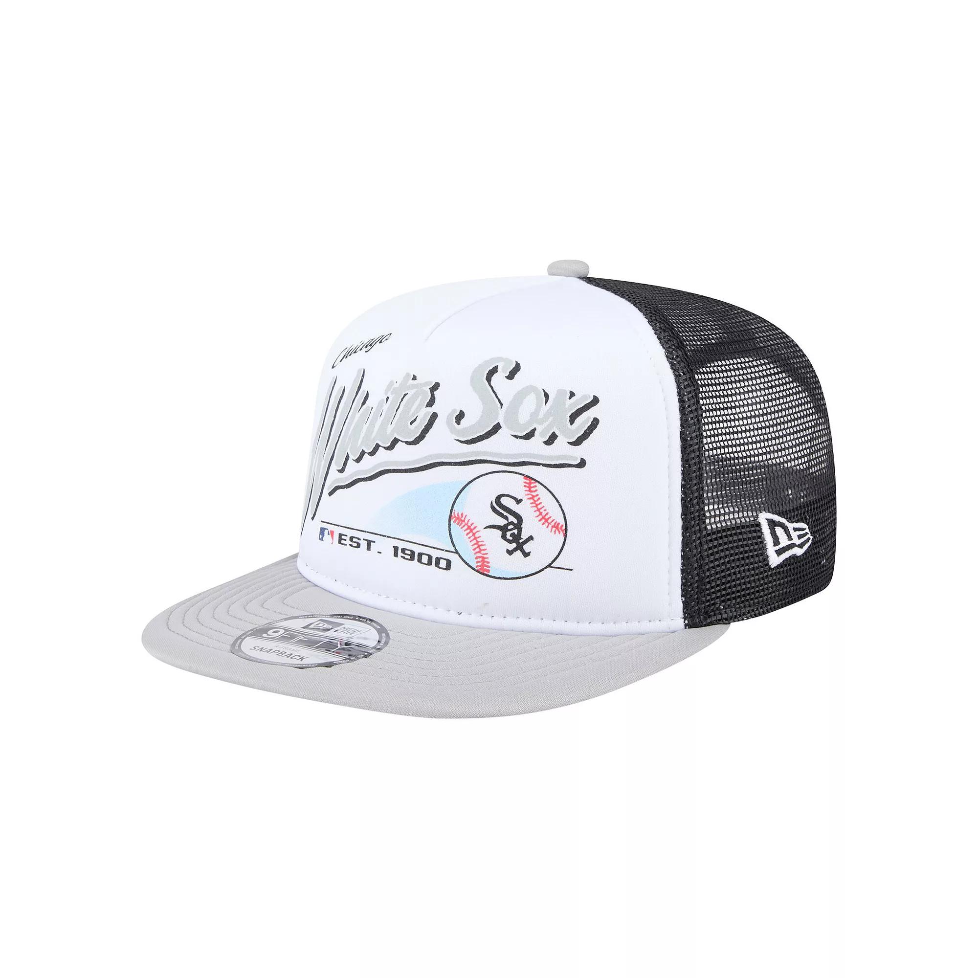 Express your love for the Chicago White Sox in vintage style with this Retro Script Trucker 9FIFTY Snapback Hat from New Era. This stylish snapback features a classic high crown and flat bill, two-toned colors and solid front panels showcasing a stylized Chicago White Sox graphic and wordmark for throwback flair. The mesh mid and rear panels provide breathability, making it perfect for all-day wear.Express your love for the Chicago White Sox in vintage style with this Retro Script Trucker 9FIFTY Snapback Hat from New Era. This stylish snapback features a classic high crown and flat bill, two-toned colors and solid front panels showcasing a stylized Chicago White Sox graphic and wordmark for throwback flair. The mesh mid and rear panels provide breathability, making it perfect for all-day wear.PRODUCT FEATURESStructured fitOne size fits mostHigh CrownOfficially licensedSnapbackStylized team graphic and wordmark printed on solid front panelsImportedFlat billMaterial: 100% Polyester - Crown, Visor & Button; 100% Cotton - UndervisorWipe clean with a damp clothMesh mid and rear panelsBrand: New Era Size: One Size. Gender: male. Age Group: adult.