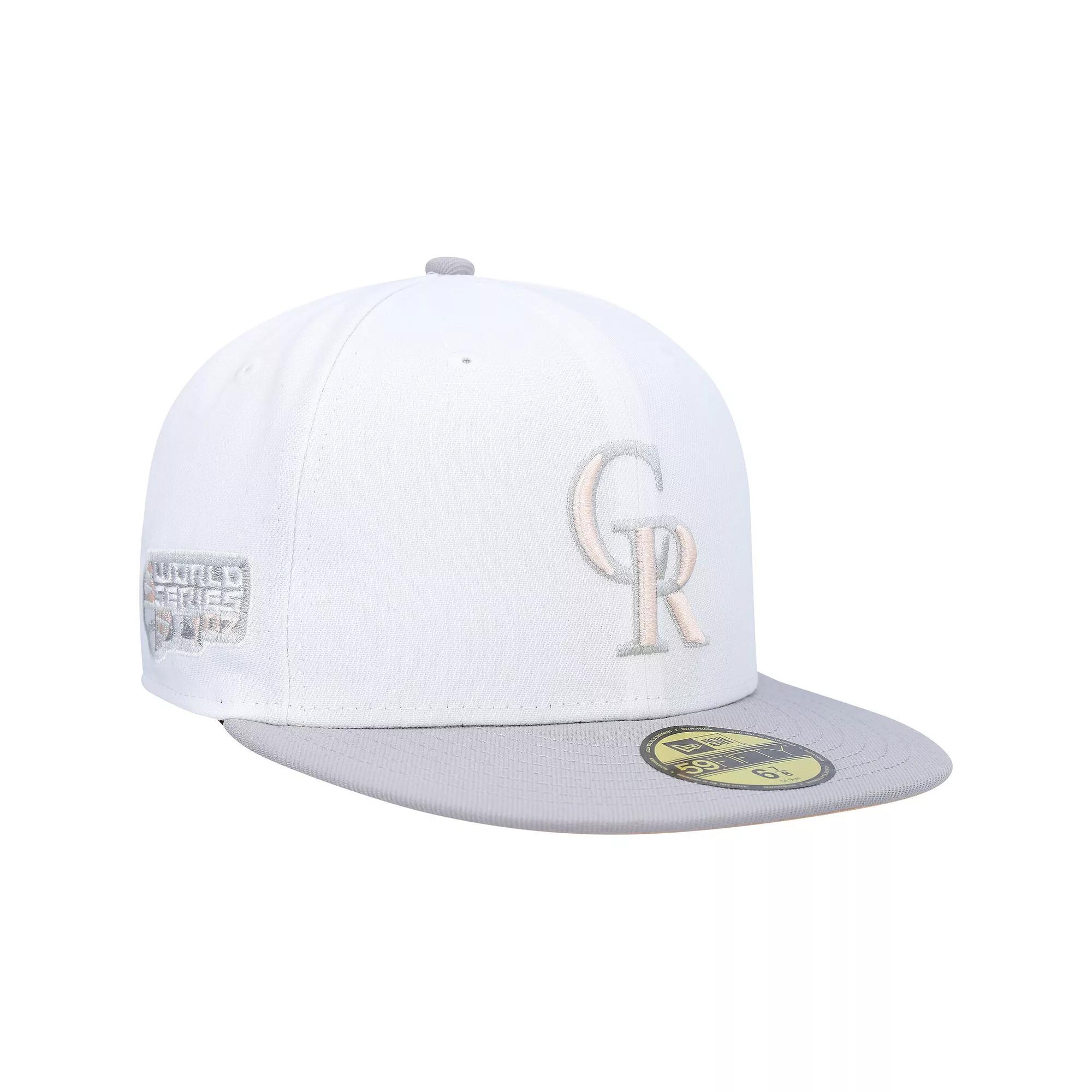 Add a stylish finishing touch to any fan getup with this Colorado Rockies Undervisor 59FIFTY hat by New Era. It features a fitted construction and trendy high crown for a classic game day look. The bold Colorado Rockies embroidery on the front panels complements a commemorative 2007 World Series side patch, showing that you're more than a casual fan.Add a stylish finishing touch to any fan getup with this Colorado Rockies Undervisor 59FIFTY hat by New Era. It features a fitted construction and trendy high crown for a classic game day look. The bold Colorado Rockies embroidery on the front panels complements a commemorative 2007 World Series side patch, showing that you're more than a casual fan.High CrownOfficially licensedFittedFlat bill with ability to curveWipe clean with a damp clothSix panels with eyeletsEmbroidered graphics with raised detailsStructured fitImportedContrast-color undervisorBrand: New EraMaterial: 100% Polyester Size: 7 5/8. Color: White. Gender: male. Age Group: adult. Material: COTTON.