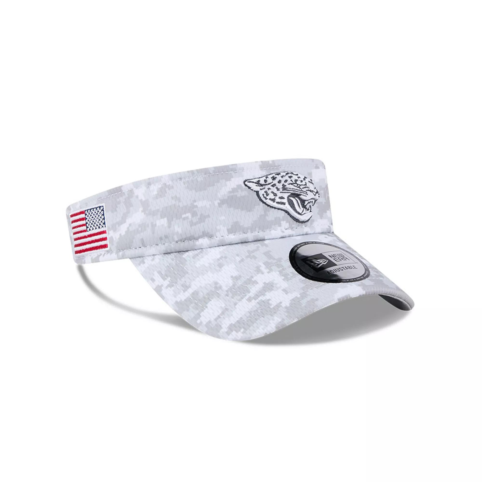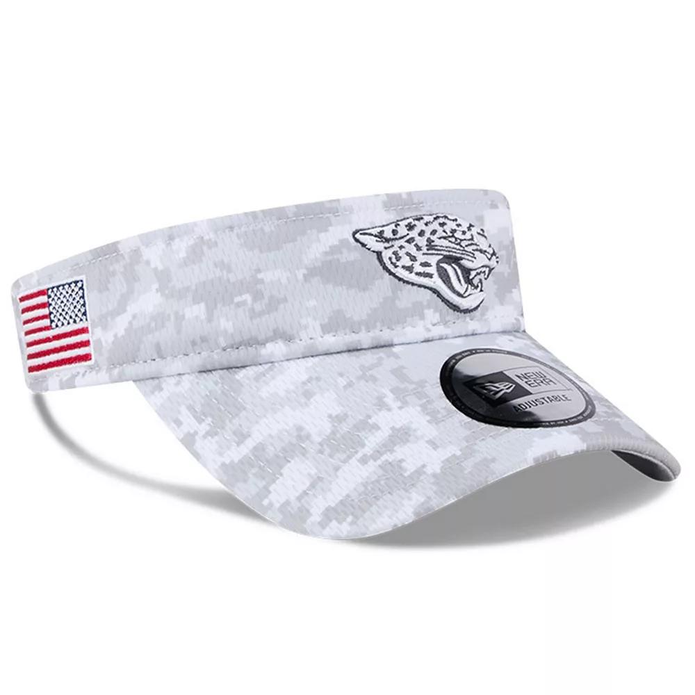Honor our service members while supporting the Jacksonville Jaguars with this 2024 Salute To Service Digital Camo Adjustable Visor. This New Era gear features an embroidered Jacksonville Jaguars logo and official NFL Salute to Service graphics. With a comfortable adjustable strap and sublimated digital camo print, this hat will make a great addition to your wardrobe. The NFL does not profit from the sale of Salute to Service products. Charitable contributions are awarded by the NFL Foundation to the NFLs military partners. For more information, please visit www.NFL.com/Salute.Honor our service members while supporting the Jacksonville Jaguars with this 2024 Salute To Service Digital Camo Adjustable Visor. This New Era gear features an embroidered Jacksonville Jaguars logo and official NFL Salute to Service graphics. With a comfortable adjustable strap and sublimated digital camo print, this hat will make a great addition to your wardrobe. The NFL does not profit from the sale of Salute to Service products. Charitable contributions are awarded by the NFL Foundation to the NFLs military partners. For more information, please visit www.NFL.com/Salute.PRODUCT FEATURESCurved billMaterial: 95% Polyester/5% SpandexOne size fits mostBrand: New EraWipe clean with a damp clothSublimated all-over patternOfficially licensedEmbroidered graphics with raised detailsImportedAdjustable hook and loop fastener strap Size: One Size. Color: White. Gender: male. Age Group: adult. Material: Cotton.