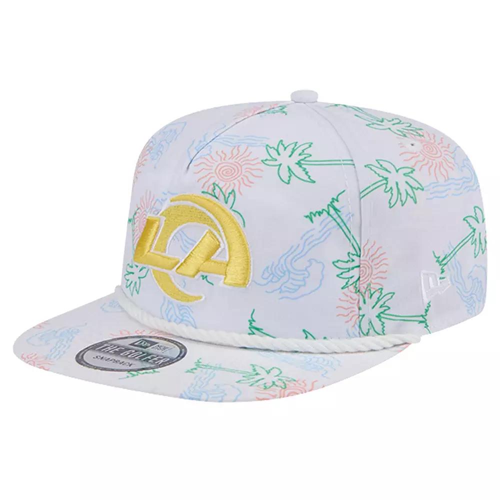 Put on this Vacay Golfer cap to show off your die-hard allegiance to the Los Angeles Rams. New Era constructed this hat to ensure you stay comfortable. With the snapback closure, youll be able to do just that with a perfect fit each time you wear it. Bold Los Angeles Rams graphics complete the look youre after.Put on this Vacay Golfer cap to show off your die-hard allegiance to the Los Angeles Rams. New Era constructed this hat to ensure you stay comfortable. With the snapback closure, youll be able to do just that with a perfect fit each time you wear it. Bold Los Angeles Rams graphics complete the look youre after.PRODUCT FEATURESMaterial: 100% PolyesterMid CrownUnstructured relaxed fitSnapbackHeat-sealed embroidered applique with raised detailsFlat billMid and rear panels with eyeletsImportedOne size fits mostWipe clean with a damp clothSolid front panelOfficially licensedBrand: New EraContrast-color undervisor Size: One Size. Color: White. Gender: male. Age Group: adult. Material: COTTON.
