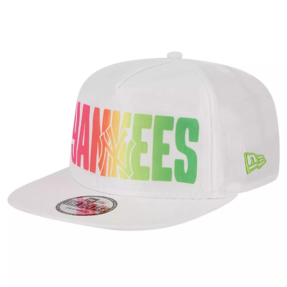 Versatile style steps up to the plate with this New York Yankees Spectrum Golfer hat from New Era. Its neutral design puts focus on the vibrant New York Yankees logo on the front to show off your unwavering fandom. A snap closure lets you quickly and easily adjust the fit for customizable comfort.Versatile style steps up to the plate with this New York Yankees Spectrum Golfer hat from New Era. Its neutral design puts focus on the vibrant New York Yankees logo on the front to show off your unwavering fandom. A snap closure lets you quickly and easily adjust the fit for customizable comfort.PRODUCT FEATURESOfficially licensedHigh CrownWipe clean with a damp clothOne size fits mostStructured fitMaterial: 50% Polyester/45% Nylon/5% SpandexWoven clip tagImportedFlat billSnapbackFive-panel constructionScreen print graphicsBrand: New Era Size: One Size. Color: White. Gender: male. Age Group: adult.