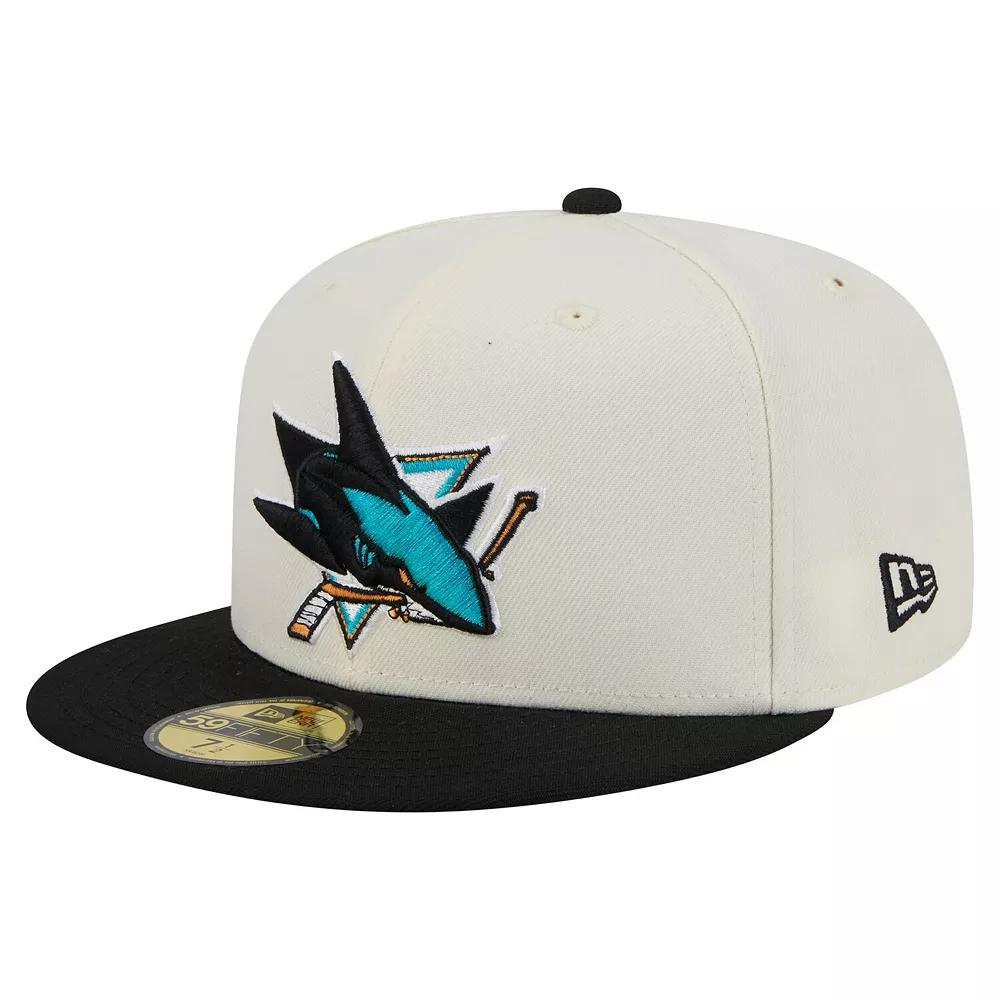 Support your San Jose Sharks with this New Era Chrome Two-Toned 59FIFTY Fitted Hat. This San Jose Sharks hat features a high crown and structured fit for a classic look. The embroidered logo at the front panels pops with raised details, while the contrast-color bill and embroidered NHL Shield at the back bottom elevate the design.Support your San Jose Sharks with this New Era Chrome Two-Toned 59FIFTY Fitted Hat. This San Jose Sharks hat features a high crown and structured fit for a classic look. The embroidered logo at the front panels pops with raised details, while the contrast-color bill and embroidered NHL Shield at the back bottom elevate the design.PRODUCT FEATURESWipe clean with a damp clothFlat billStructured fitContrast-color billHigh CrownBrand: New EraOfficially licensedFittedEmbroidered logo at front panels with raised detailsEmbroidered NHL Shield at back bottomImportedNew Eras 59FIFTY is the originator of the true fitted cap and the brands flagship styleMaterial: 100% Polyester - Body; 100% Cotton - Undervisor and Front LiningSix panel construction with eyelets Size: 7 7/8. Color: Sks Beige. Gender: male. Age Group: adult.