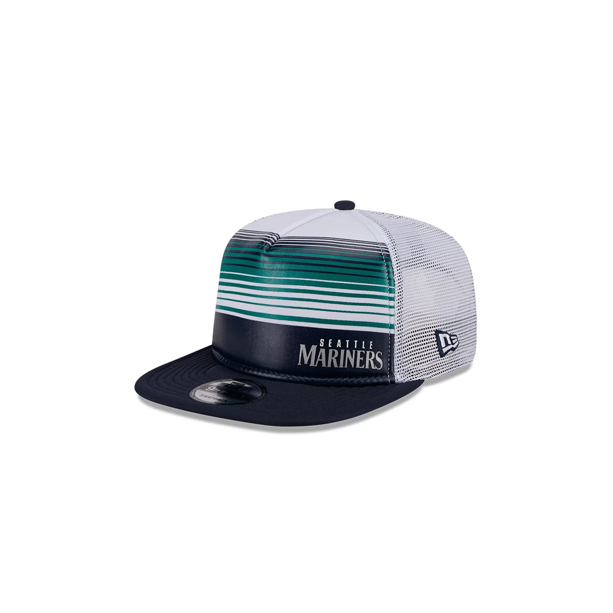 Add this New Era Team Horizon 9FIFTY A-Frame Trucker Snapback Hat to your Seattle Mariners collection. The 9FIFTY A-Frame boasts a high-profile pinched crown and single-panel front for a classic snapback look thats both stylish and comfortable. Featuring mesh mid and rear panels, this hat provides breathability and a touch of sporty flair, while the heat-sealed graphics and design showcase your Seattle Mariners pride with a modern edge.Add this New Era Team Horizon 9FIFTY A-Frame Trucker Snapback Hat to your Seattle Mariners collection. The 9FIFTY A-Frame boasts a high-profile pinched crown and single-panel front for a classic snapback look thats both stylish and comfortable. Featuring mesh mid and rear panels, this hat provides breathability and a touch of sporty flair, while the heat-sealed graphics and design showcase your Seattle Mariners pride with a modern edge.PRODUCT FEATURESFlat billWoven clip tag with team graphicImportedSnapbackHeat-sealed graphics and designHigh CrownContrast-color undervisorBrand: New EraOfficially licensedMaterial: 100% PolyesterWipe clean with a damp clothThe 9FIFTY A-Frame is a classic snapback style with a high-profile pinched crown and single-panel frontStructured fitOne size fits mostMesh mid and rear panels Size: One Size. Color: White. Gender: male. Age Group: adult.