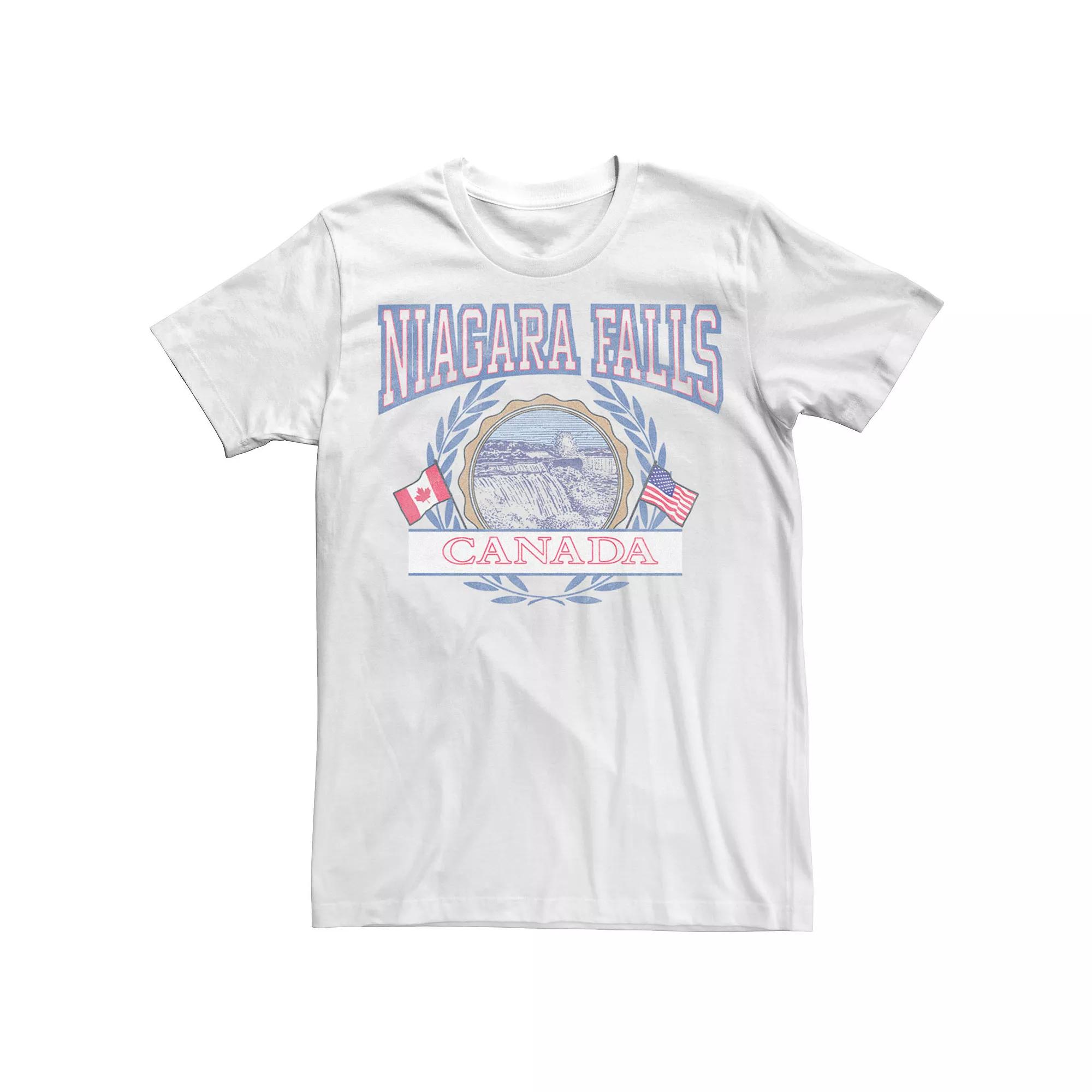Men's Niagara Falls Canada Two Flags Leaf Ribbon Seal Tee, Size: XL, White
