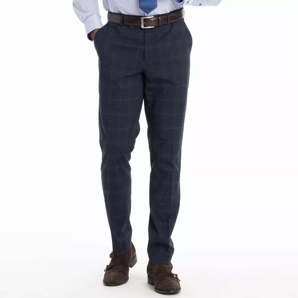 Step into style with these Mens Nick Graham Bowery Slim Fit Suit Pants. Click on this MENS GUIDE to find the perfect fit and more!Step into style with these Mens Nick Graham Bowery Slim Fit Suit Pants. Click on this MENS GUIDE to find the perfect fit and more!FEATURES Button & zipper front Stretchy fit Zipper fly 2 front pockets and 2 back pocketsFIT & SIZING Slim fitFABRIC & CARE Polyester, rayon, spandex Polyester lining Dry clean Imported Size: 34X34. Color: Navy Plaid. Gender: male. Age Group: adult.